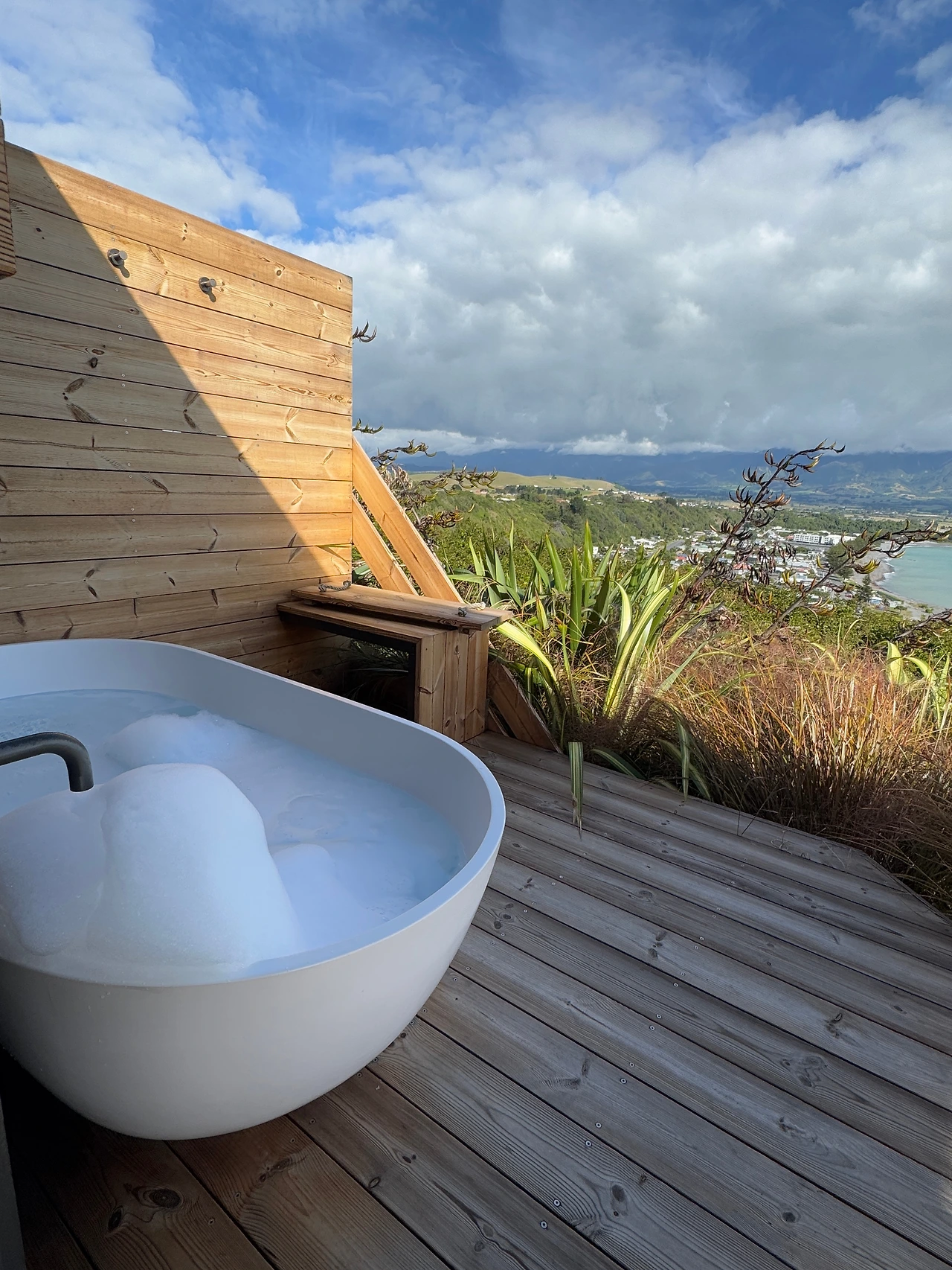 돌고래수영이 끝나고 후다닥 집으로 돌아왔다. 목적은 컵라면과 야외욕조! 우리 숙소 마당에는 꽤나 큰 욕조가 있었다. 배스오일을 넣고 충분히 물을 받은 후 풍덩 들어갔다. 바다에서 불어오는 바람이 시원하고 몸은 물속에 따뜻하다. 불을 손으로 나무젓가락을 뜯어 컵라면을 후후 불어서 먹으며 우리가 아까 수영했던 바다를 절벽 아래로 내려다보았다. 천국이 있다면 이런 기분일까, 돌고래를 보았던 비현실적인 기분에서 돌아와 다시 하늘 높이 올라가는 기분이다. 몸이 노곤노곤해질 때쯤 나와서 씻고 낮잠을 잤다.