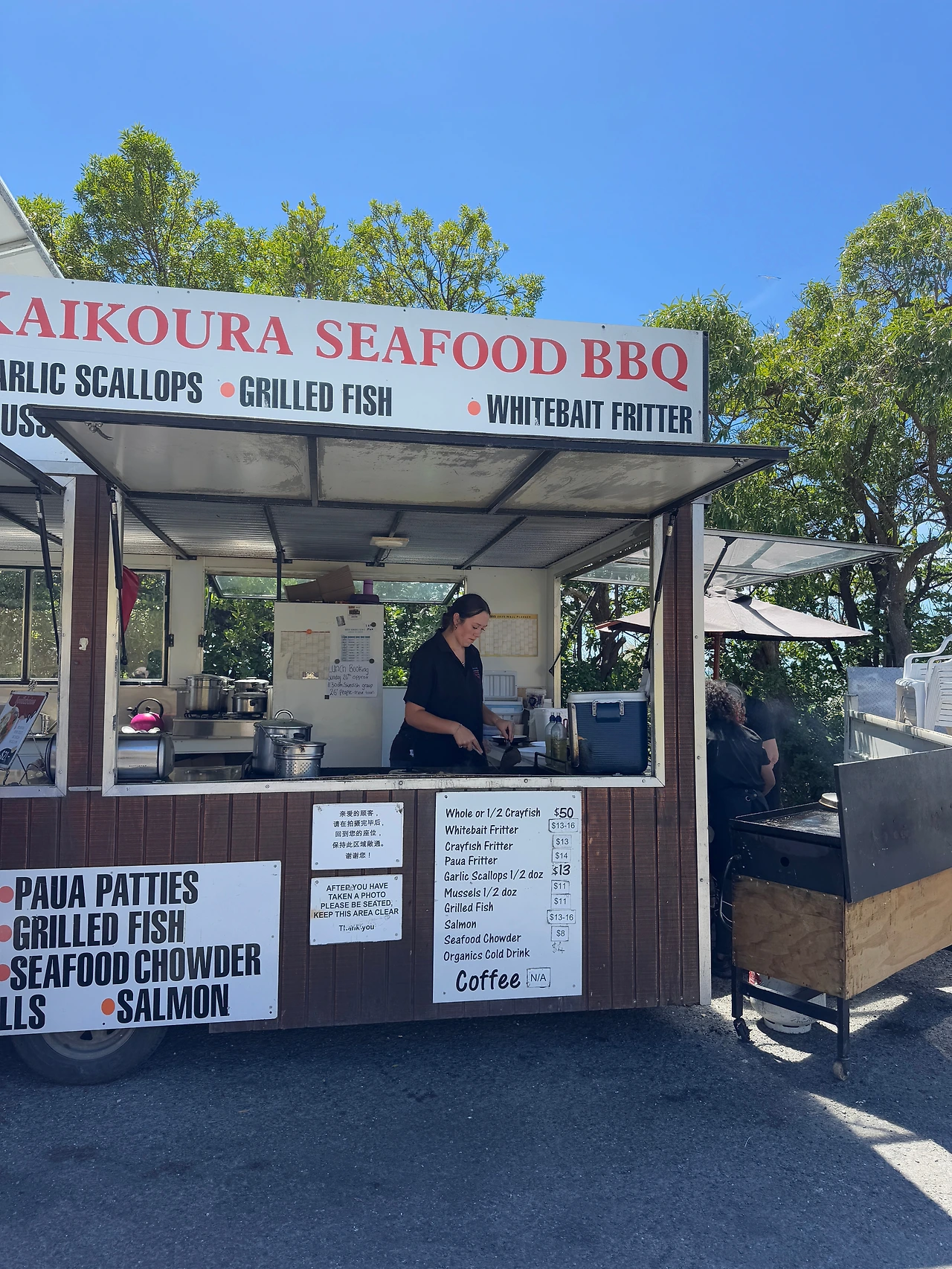 어떻게 잤는지도 모르고 일어나 보니 벌써 점심시간. 어제부터 찜해두었던 해물철판 푸드트럭에 갔다. 점심시간만 짧게 하는 집이라 시간 맞춰서 후다닥 갔더니 벌써 줄이 꽤나 있다. 합석을 해서 햇빛을 조금 가려주는 테이블에 자리를 겨우 자리를 잡고 철판에 구운 크레이피시, 성대구이(뉴질랜드에서는 성대를 자주 사용한다), 초록입홍합을 시켰다. 우리의 원픽은 단연 성대구이! 소금간된 생선을 밥 위에 올려 와아아 먹으면 입안에서 하얀 살이 탱글 하게 결 따라 부서진다. 초록입 홍합은 홍합이니까 맛있었고 크레이피시도 크레이 피시니까 당연 맛이 좋았지만 차가운 바닷물에서 자란 성대는 단연 기억에 남았다.