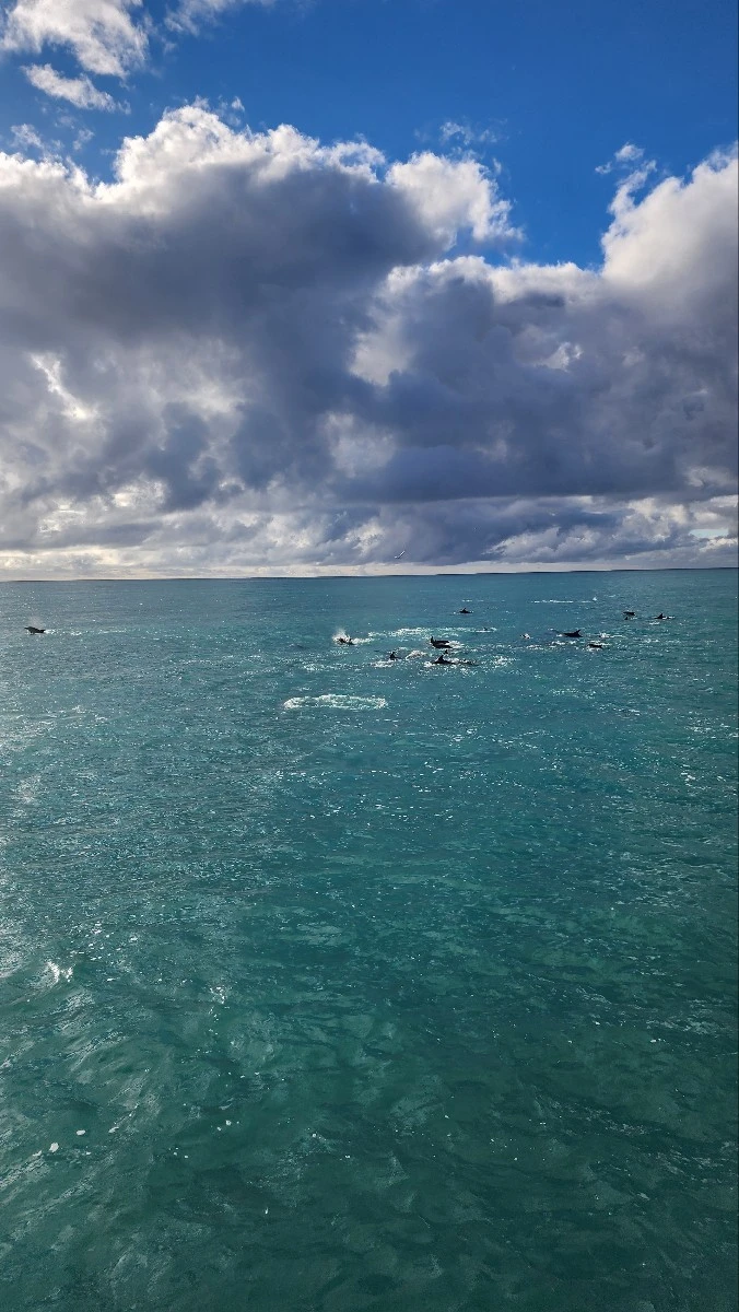 두 번째 스폿으로 이동했다. 이전보다 조금 더 요령을 알았다. 머리를 들어 돌고래를 찾은 다음 돌고래가 있는 곳으로 다가갔다. 머리를 넣은 순간, 탄성이 절로 나왔다. 내 주변에 수많은 돌고래가 수영하고 있었다. 그들은 장난치면서 가고 있었는데 서로 뱅뱅 돌기도 하고 바다 위에서 쌍점프를 하기도 하며 놀고 있었다. 처음 보는 이방인인 나를 개의치 않고 내 아래로 쓱 지나가거나 위로 점프해 가기도 했다. 내 주변을 빙글 돌기도 하며 돌고래들은 말 그대로 놀고 있었다. 비현실적인 시간이었다.
