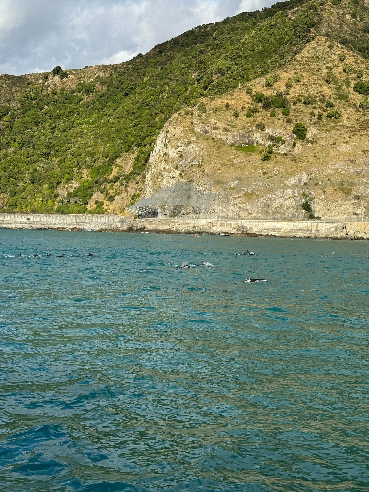 어느새 수영이 끝나고 정박장으로 돌아가면서 우리는 갑판 위에서 돌고래를 보았다. 아까 보았던 무리들이 우리 배와 방향을 함께 하고 있었다. 따라오는 것은 아닐까 생각이 들 정도로 함께 가고 있었다. 가이드의 설명이 이어졌다. 우리가 함께했던 돌고래는 dusky dolphin이라는 종으로 돌고래 중에서도 활발한 개구쟁이 같은 아이들이라고 한다. 아크로바틱을 하며 물속을 유영하고 물 위에 날아다니는 모습이 심심찮게 보이는데, 물 위에서 연속 5-6번을 점프하기도 하고 백스핀 하기도 했다. 그들이 이렇게 하는 이유는 전혀 밝혀지지 않았지만, 가장 유력한 가설은 그냥 재미로 한다는 것이다. 안타깝게도 그들은 전 세계에 12,000 마리 정도밖에 남지 않았으며 뉴질랜드에 가장 많다고 한다.