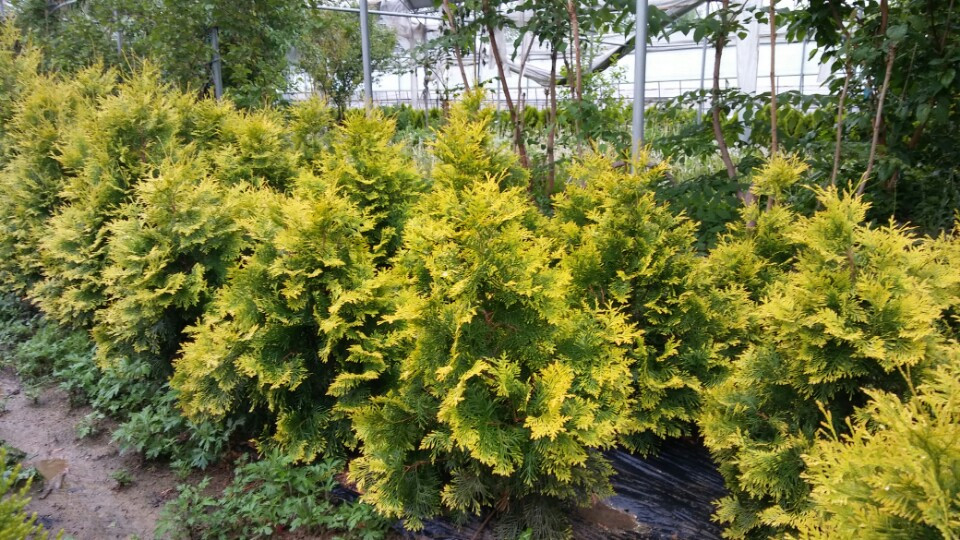 측백의 경우도 마찬가지로 차폐로 쓰이는데, 황금측백은 정원의 작은 크리스마스트리처럼 포인트로 쓰일 수 있다.