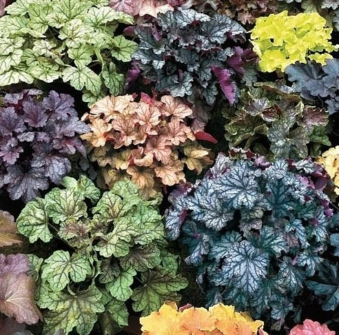 휴케라는 마치 양상추처럼 생긴 넓적한 잎을 가지고 있다. 모든 초화류가 다양한 종이 있고 색이 다양하기는 하지만, 휴케라의 매력은 색색의 잎을 가지고 있다는 데에 있다. 또 넓적하고 잎의 문양이 잘 보이는 탓에, 마치 커다란 꽃처럼 보이기도 한다.