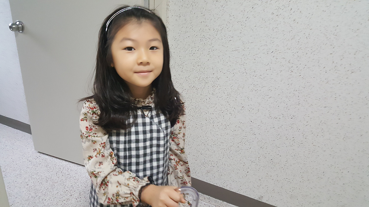 어깨 부분도 부자연스럽고, 아직 자수도 들어가지 않고 액세서리도 넣지 않은 미완성이다. 그러고 보니 딸아이의 긴 머리가 어깨를 감춰줘서 더욱더 그럴싸하게 보인다.