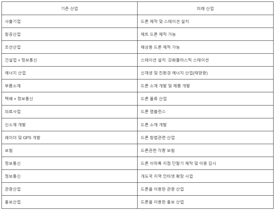 드론 산업에 따른 기존 사업 적용 분야