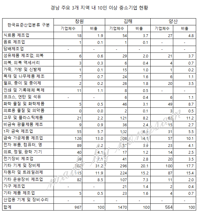 이번에 진행하는 연구의 대상은 창원, 김해, 그리고 양산 지역 내 제조업 중소기업들이며 데이터는 2017년도 이다.