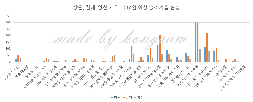 제약조건은 지역(창원, 김해, 양산)과 중소기업, 그리고 제조업이다.