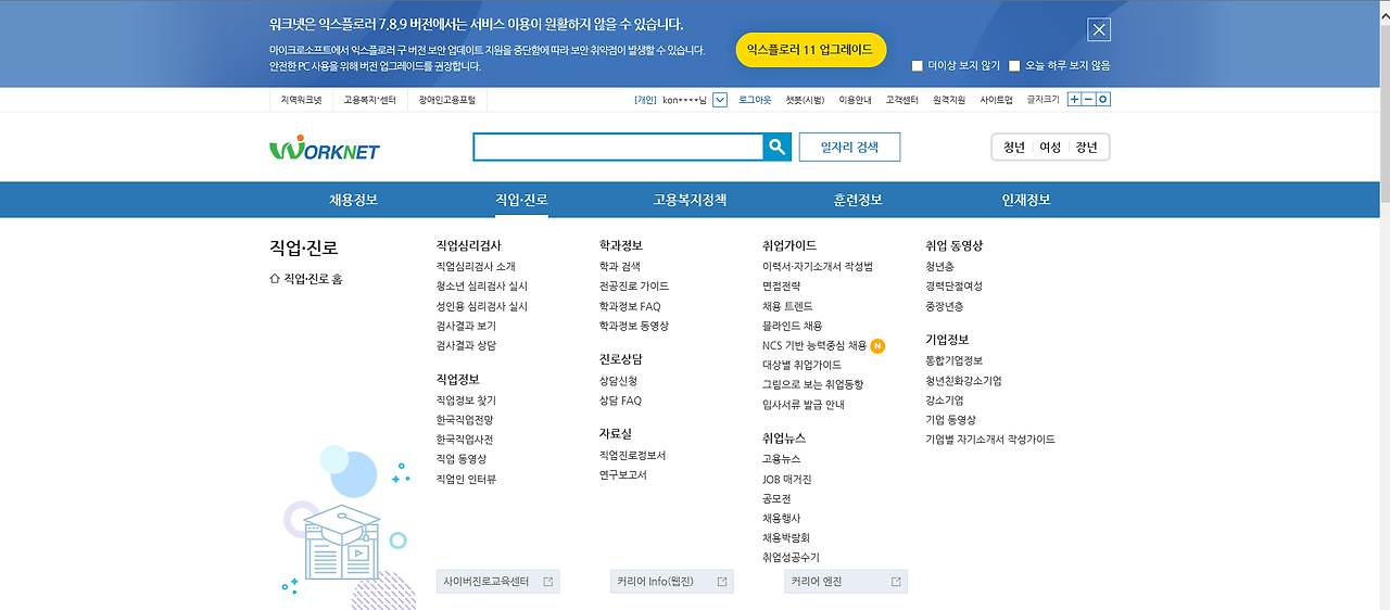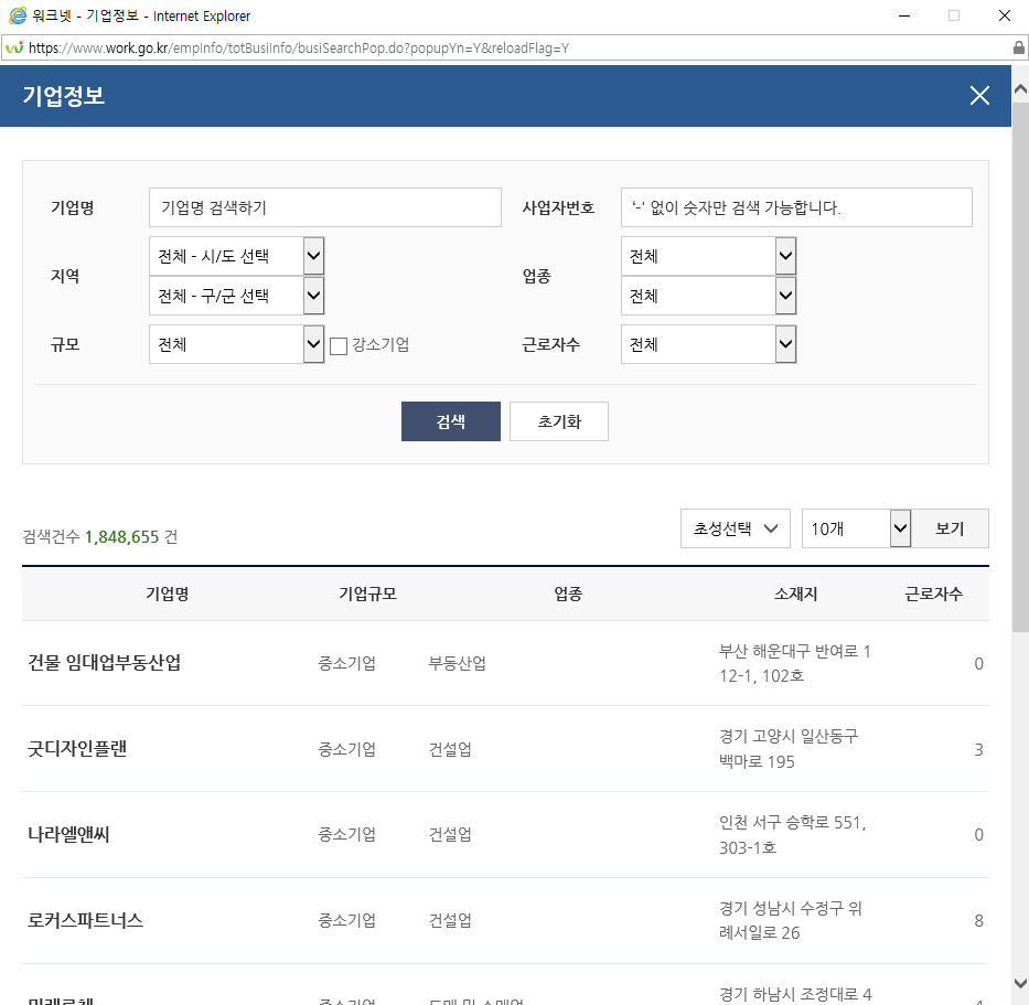 먼저 기업들을 찾아내기 위해서 참고한 사이는 Worknet구직 사이트이다. worknet사이트에서 기업 정보를 확인할 수 있는데, work.go.kr에 들어가서 직업. 진로라는 메뉴에 들어가서 통합 기업정보로 들어가서 확인이 가능하다. 아래 그림을 클릭하면 상세한 내용을 확인할 수 있다.