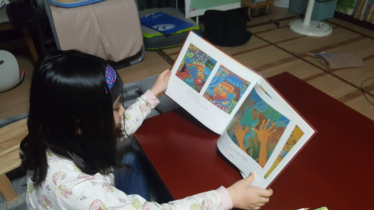 그리고 가장 중요한 과정으로 딸아이와 아빠가 함께 동화책에 대해 이야기하는 금요일입니다.