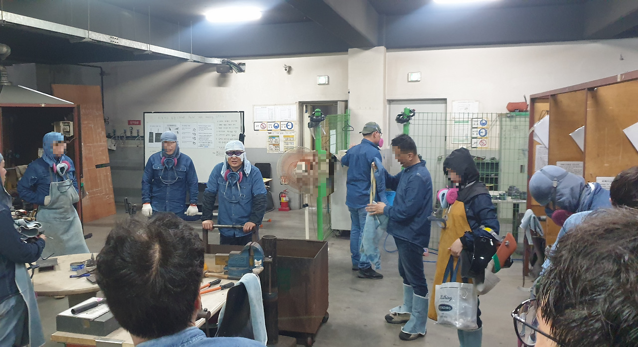 쏟아지는 땀, 각종 분진, 쇳덩어리에서 나오는 녹, 축축해진 옷, 늘 검은 장갑, 마스크 속 정체 모를 오염물질, 보호구에 쌓이는 분진.... 알레르기가 있는 사람에게 치명적인 환경일 것이다.