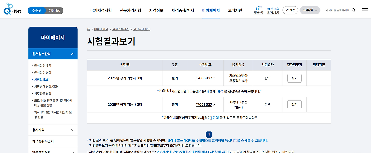 그리고 그 뒤로 피복아크용접 실습으로 잊고 지내다 Q-net에 들어가서 시험결과를 찾아보았다.