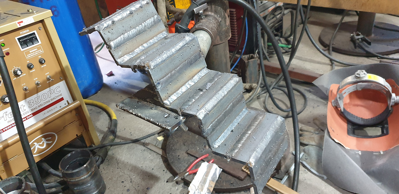그리고 오늘 하루 종일 맞대기 연습하면 만들어진 결과물도 갈매기 모양으로 만들어 연이어 용접을 해 버렸다. 그랬더니 마치 계단 모양으로 만들어 여러 사람을 웃겨주었다.