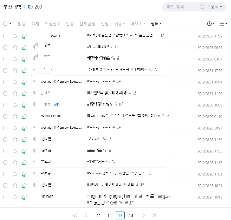 이메일을 살펴보니, 2012년 메일이 시작이다.