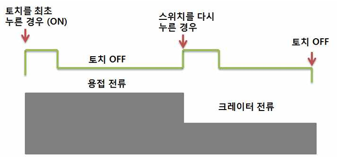 예를 들어, 아래보기로 용접을 하다가 바로 이어서 수직용접을 하게 될 경우, 방아쇠(트리거)를 한 번 더 잡아 주면 2차 전류(낮아진 전류전압)로 용접하면 쉽게 올라갈 수가 있다. 다시 말해서 아래보기에 사용했던 1차 전류로 수직으로 용접하게 되면 백 프로 흘러내리게 되는데 2차 전류로 바꿈으로써 흘러내리지 않는 용접이 가능한 것이다.