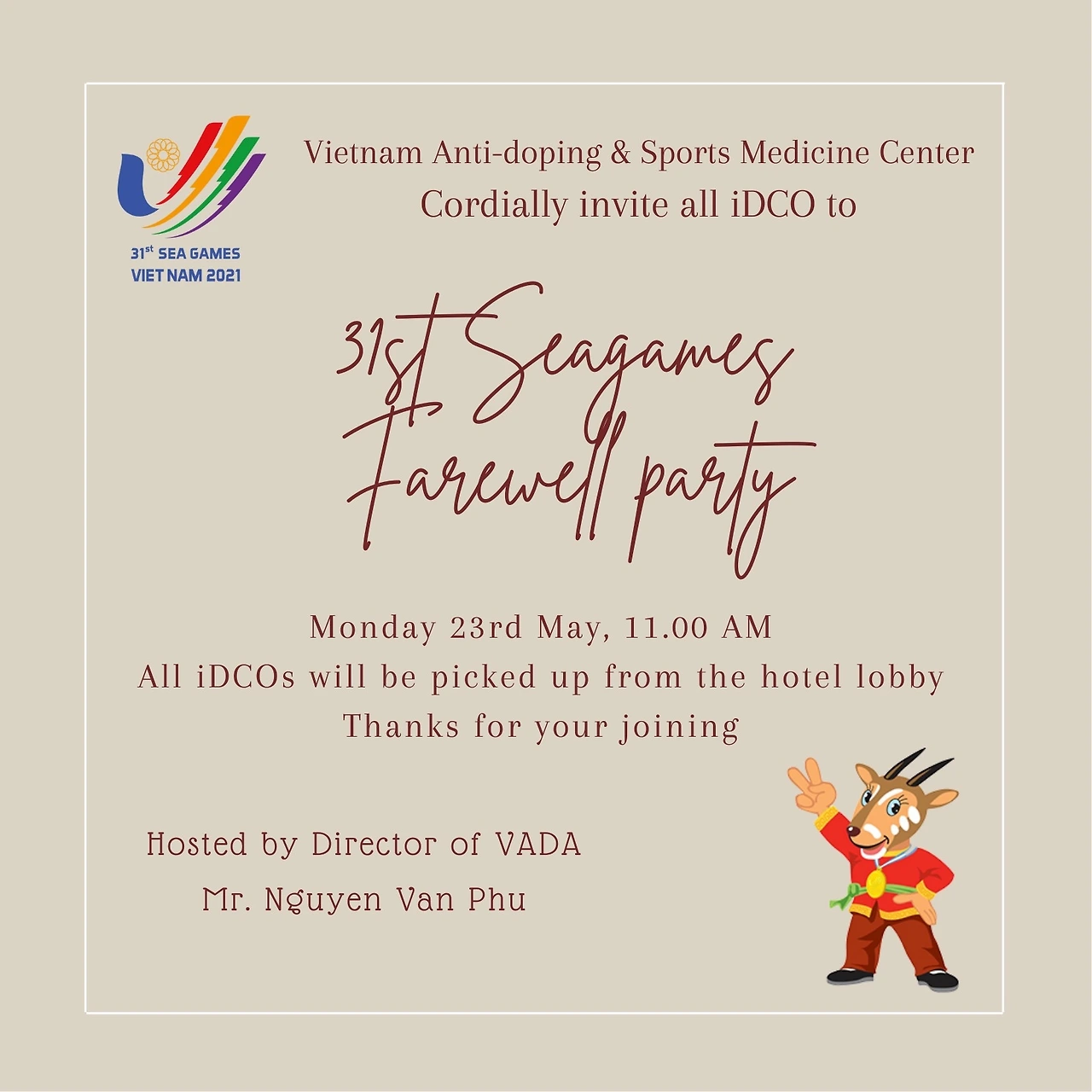 떠나기 전 베트남 도핑방지위원회에서 아주 특별한 자리를 마련해 주었다. 지난 2주간 함께 고생했던 국제 도핑검사관들을 위한 송별회 자리다.