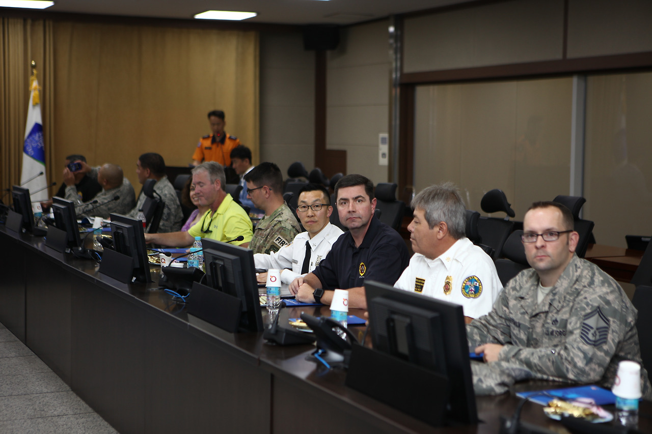 소방간부 고급과정 프로그램의 하나인 Field Trip에서 통역을 하고 있다.