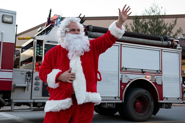 주한 미 공군 오산기지 소방대원들이 성탄절 행사에 산타클로스를 소방차로 이송하고 있다. (출처: OSAN Air Base)