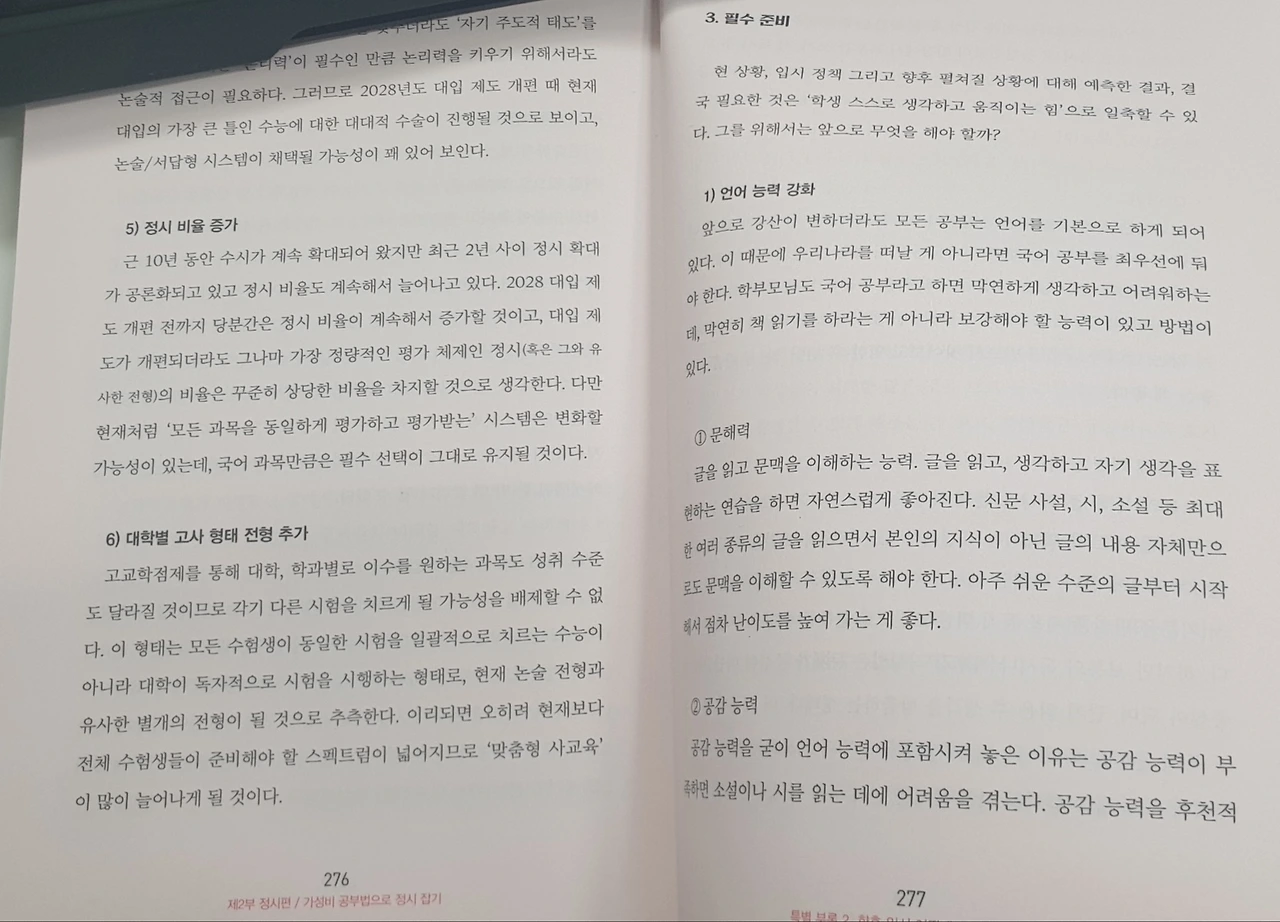 아이러니하게도, 나는 이제야 수능이 방향을 제대로 잡았다고 생각한다. 1달 전에 출간한 [공부 열심히만 하지마라]의 마지막에, 평가원은 결국 수능이라는 시험의 근본을 ‘언어능력 – 문해력, 공감능력, 어휘력’ ‘문제 해결능력’ 에 둘 것이라고 이야기 했는데 이번 수능은 이러한 예측을 정확히 반영한 것이라고 생각된다.