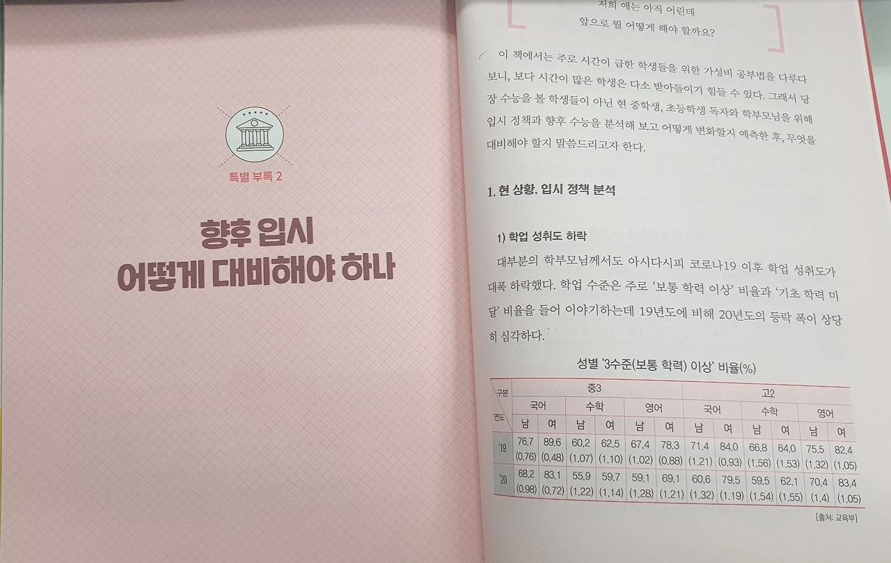 그러니 이번 수능의 등급컷이 낮은 이유는 ‘어려워서’ 가 아니라, 문제 유형이 기존과 다르니 ‘적응이 안 돼서’ 라고 생각한다. 이번 시험은 그저 ‘어려웠던’ 시험이 아니라 쌓여왔던 폐해를 만천하에 드러낸 역할을 한 것뿐이다.