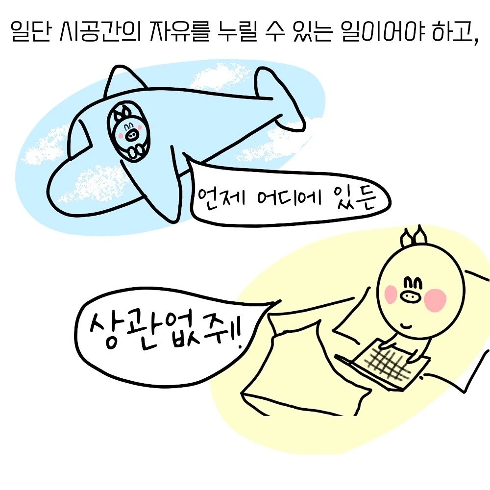 나는 요즘 직업에 대한 생각을 거의 언제나, 항상 하고 있다. 이왕 백수가 된거, 정말 좋아하며 할 수 있는 일을 찾고 싶다. 시공간이 자유롭고, 사람들과 너무 심하게 부대끼지 않는 그런 일. 창작을 마음껏 할수 있는 그런 일.내가 이런 일을 찾고싶다고 말하면 가장 많이 듣는 이야기는 그런 일은 세상에 없다는 것이다.