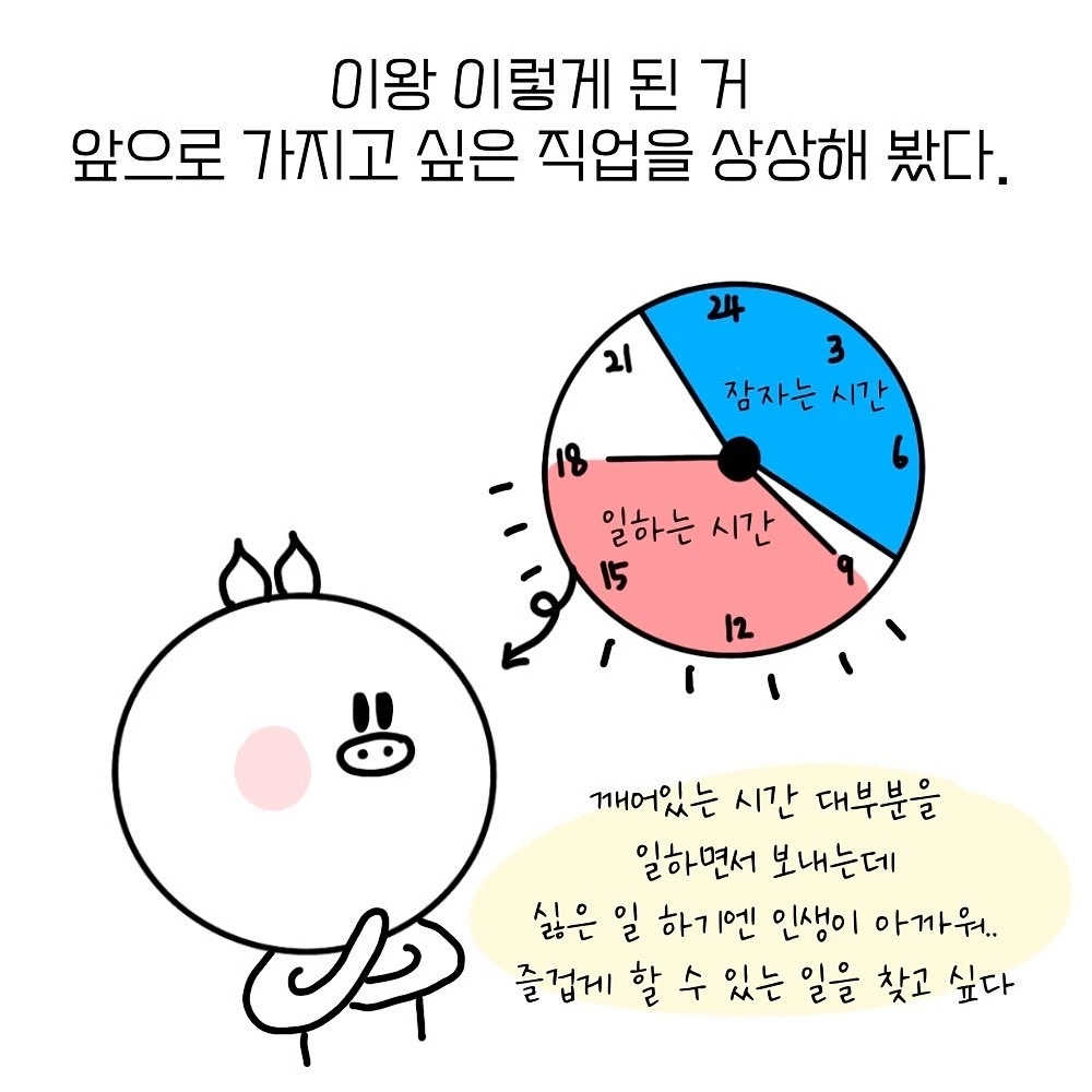 지금으로서 그렇게 할 수 있는 일이란 글쓰기와 그림그리기 뿐인데. 아무리 즐겁고 좋아도 직업으로 삼을 수 있으려면 돈이 따라오고 생계를 해결할 수 있어야 하니 그게 참 딜레마다. 사람에게 직업이란 정말 어떤 의미일까?