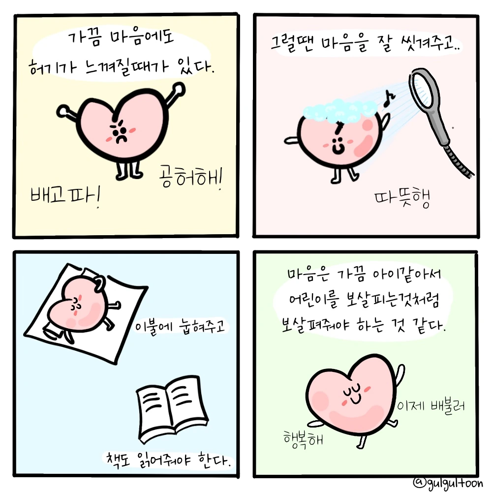 지난 몇년간 선생님을 하면서 남들의 마음만 신경쓰고 생각하느라 정작 내 마음은 돌보지 못한 순간들이 많았다. 공허한 마음이 들때마다 어떻게든 그걸 빨리 해소하려고 사람들과 모임을 갖거나, 마구잡이로 인스턴트음식을 먹거나, 술을 마시거나 혹은 연애상대를 찾아 연애를 했다. 공허한 마음을 채우는데에는 다른 사람이 필요하다고 생각했다. 그리고 그런 것들이 나를 진정으로 충만하게 채워줬나 생각해보면 .. 오히려 다른 사람에게 마음을 채워줄 것을 기대하다가 실망하던 순간들에 더 공허해졌던 순간들이 떠오른다.