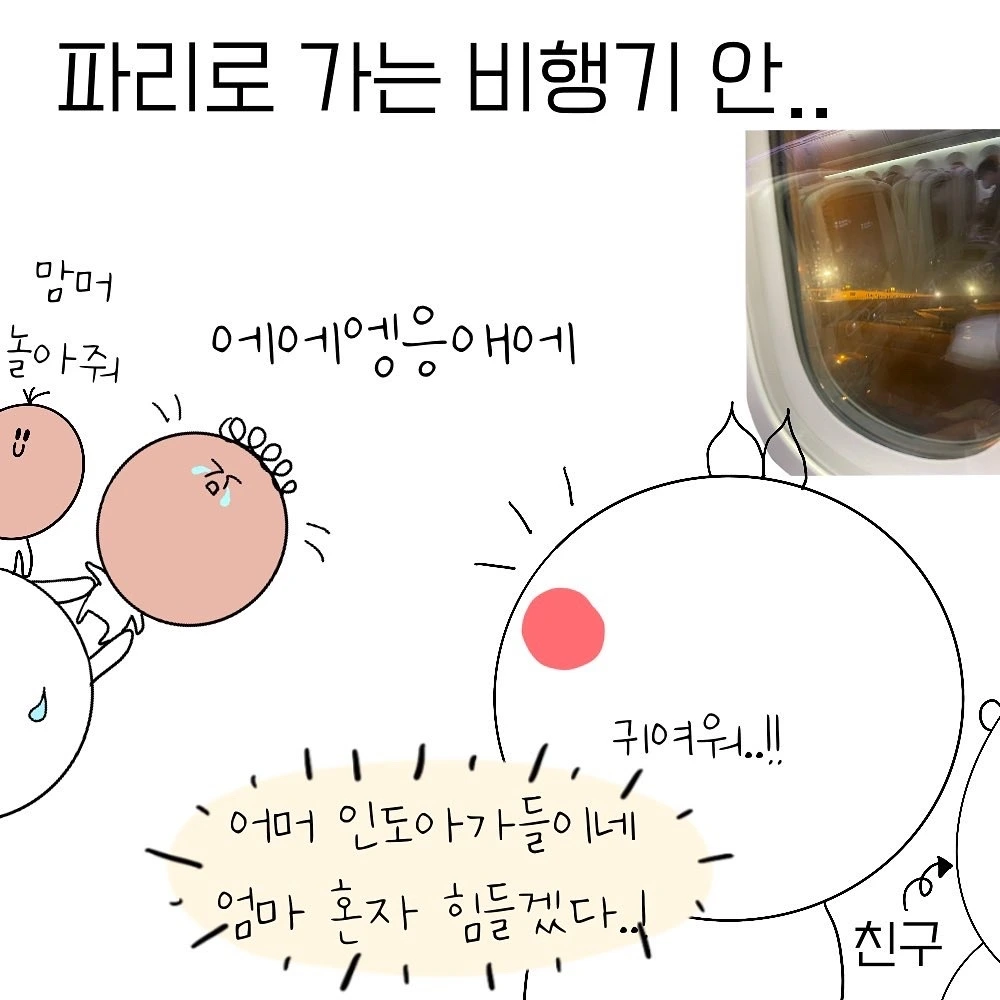 두 아이들의 시선을 온몸으로 받으며 아이엄마와 아이들에 대해 이야기나누는 그런 상황에 옆자리 친구가 유아교육과 출신인걸 티낸다며 웃었다. 이러려고 한건 아니고 오랜만에 본 아이들이 예뻤을 뿐인데. 비록 뛰쳐나온 길이지만 그럼에도 내게 유아교육의 DNA라도 있는걸까? 5살짜리 아이가 경계를 풀고 내게 온 뒤 아기엄마는 아기를 한손에 안은 채 한참 전 나온 기내식을 허겁지겁 먹기 시작한다. 아기엄마가 나랑 비슷한 나이대로 보이는데 아이 둘을 혼자 보느라 힘들었겠다고 생각했다. 안쓰러워라.