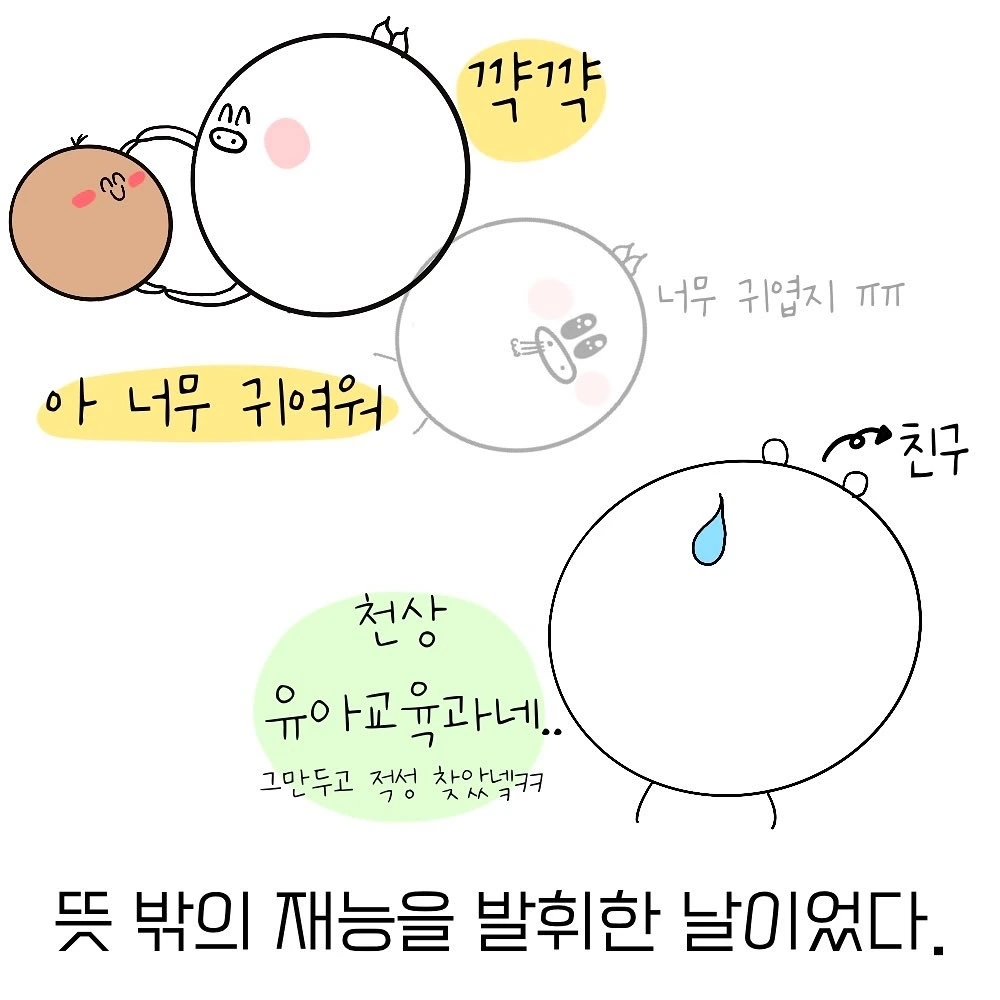 아이들은 참 예쁘다. 매일 볼때는 그 사실조차 까먹을만큼 힘들어서 그만뒀는데 이렇게 오랜만에 아이들과 놀아주니 너무 즐거웠다. 한 3일에 한번씩만 아이들과 노는 직업은 없나 하고 생각해보다가 포기한다. 그냥 이렇게 가끔 아이들과 놀고 대화하는걸 즐거운대로 놔둬야지. 유치원교사를 하면서 아주 소중한것을 배웠다는 생각이 들어 웃음이 나왔다. 바로 아이들과 대화하는 방법을!