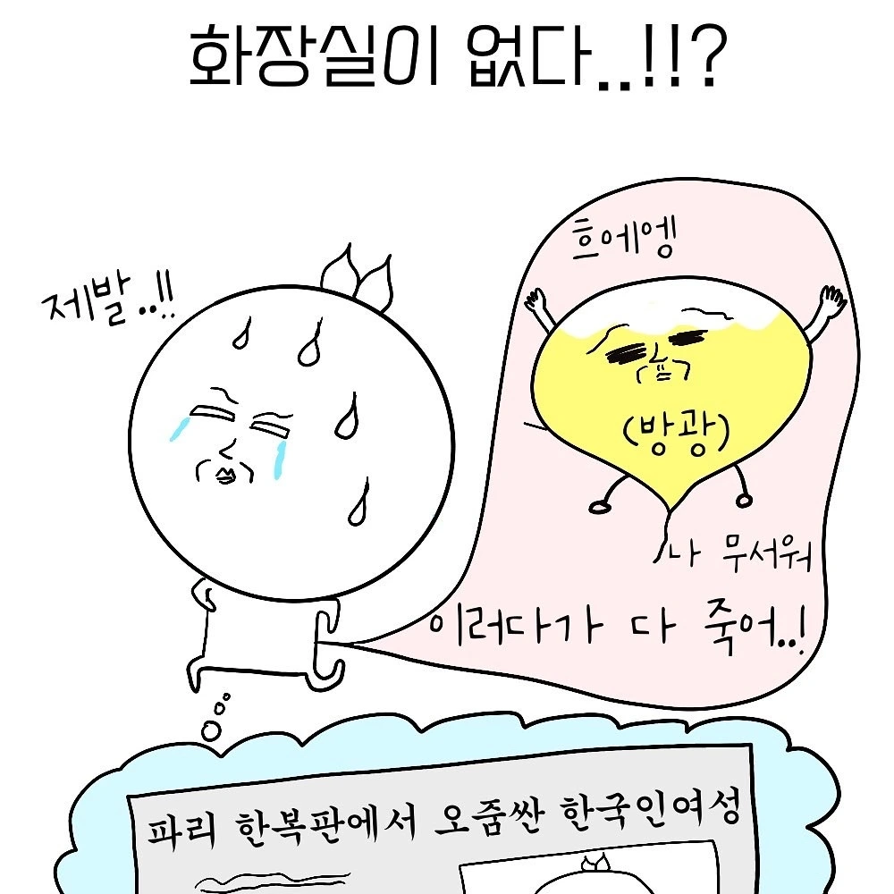 그렇게 생각하니 에펠탑 앞에서, 어두운 골목길에서, 다리밑에서, 해안가에서 목격한 노상방뇨인들도 이해가 갔다. 하지만 여성은 노상방뇨도 쉽지 않을텐데.