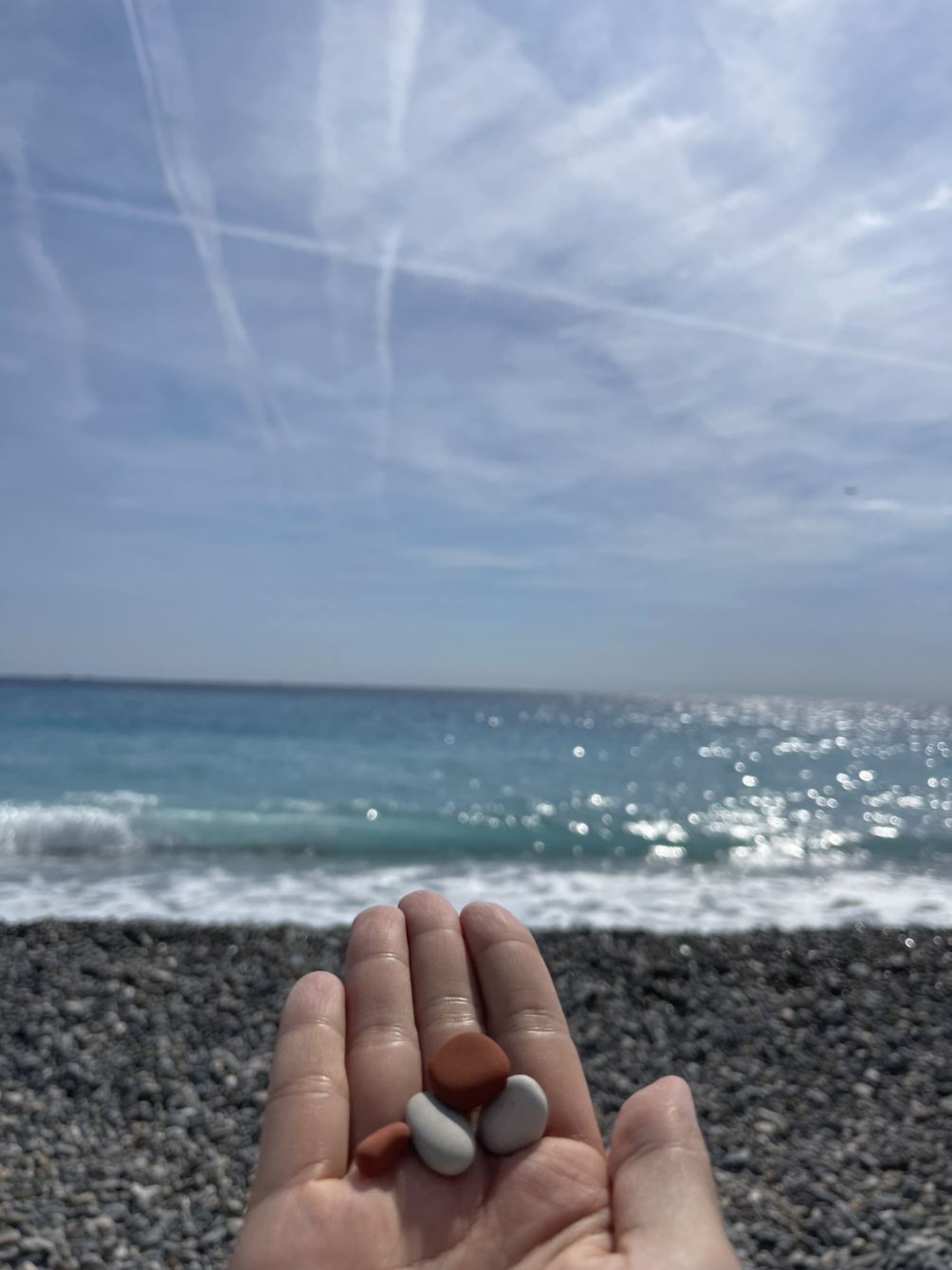 나는 깔깔 웃는다. 그렇긴 하지. 그리고는 생각한다. 그래도 우리 엄만 분명 좋아할거야. 샤넬백은 한국에서도 볼수 있지만 니스의 돌멩이는 니스에서만 볼수 있으니까 우리 엄마는 분명 보고 싶을거라구. 친구는 날 놀리면서도 돌멩이 몇개만 달라고, 사실 자기도 돌멩이 주워오는걸 좋아한다고 털어놓는다. 그럼 그렇지! 너도 좋아하지!? 나는 의기양양하게 동그란 돌멩이 6개를 골라 친구에게 주고는 엄마에게 메세지를 보냈다.
