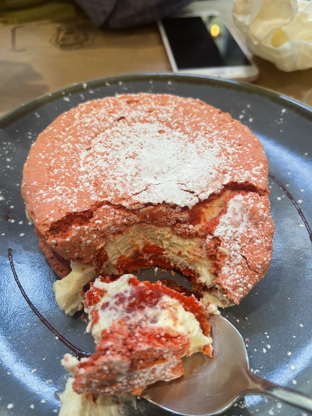 조각케잌처럼 큰 마카롱도 하나의 작품이었다. 이렇게 큰 꼬끄를 이렇게 고르게 바삭하게, 속은 도톰하고 쫄깃하게 구울수가 있을까? 아무리 먹어도 질리지 않는 크림은 또 어떻고. 가격도 7-8천원 사이의 가격이다. 지나가다가 눈에 띈 동네의 제과점에서 사먹었는데 한국에서 먹은 그 어떤 유명한 마카롱 디저트보다 맛있다.