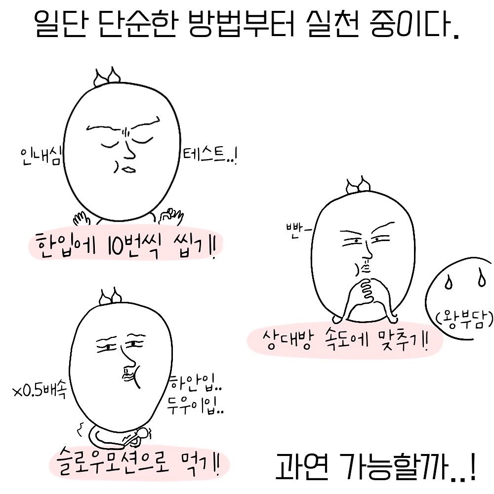 이제는 그만뒀으니 습관을 좀 고쳐봐야겠다고 생각했다. 식사를 최소20분 이상 느리게 하고 천천히 씹어야 건강에 여러모로 좋다고 한다. 찾아보니 빠르게 먹으면 주의를 주는 스마트포크라던지 구강에 끼워서 음식을 조금씩 먹게하는 장치도 있다고 하는데 알량한 자존심에 또 도구의 도움까지 받고 싶지는 않다. 또는 음식자체를 음미하고 소중히 여기면서 먹기 위해 음식 중에 하는 명상도 있다고 한다. 이건 한번 해볼만 하겠다 싶어 일단 어플을 다운받기로 한다. 그리고 열번이상 씹기, 상대방과 속도 맞추기, 천천히 먹기라는 규칙을 세워놓고 실천하려고 한다. 어린아이도 아닌데 식습관교정을 하고 있다니. 살아가는데 자질구레하게 신경쓸것도 참 많다 싶기는 하지만 그래도 좋아하는 사람들과의 식사시간은 아주아주 소중한거니까, 열심히 해봐야지.