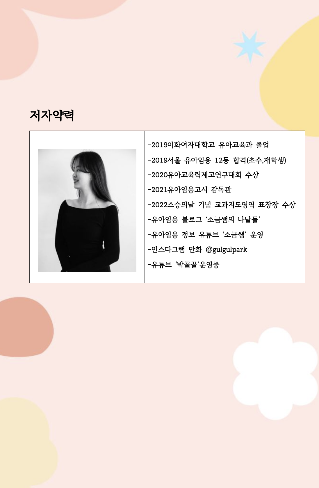 저는 이화여자대학교 유아교육과를 졸업해 서울유아임용에 재학생, 초수로 상위 7%내 점수로 삽격했고 국공립유치원교사생활을 3년간 하며 연구대회수상 및 표창장을 받는 등 유아교육에 관한 경력이 있습니다.