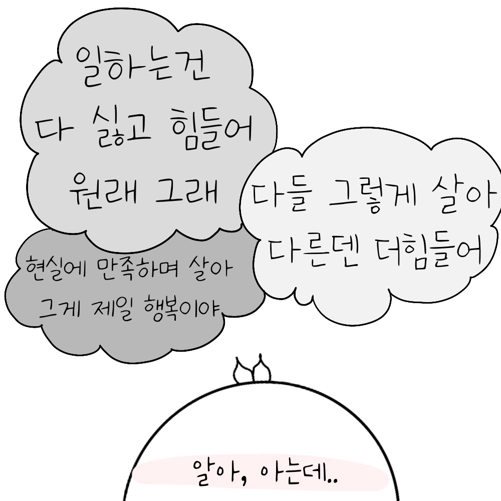 -원래 다들 힘들게 버티며 사는거야, 삶이 별거 있는줄 아니, 일하는거 모두가 싫어해. 다른 직장은 더 힘들어. 니가 아직 어려서 뭘 몰라서 그래..