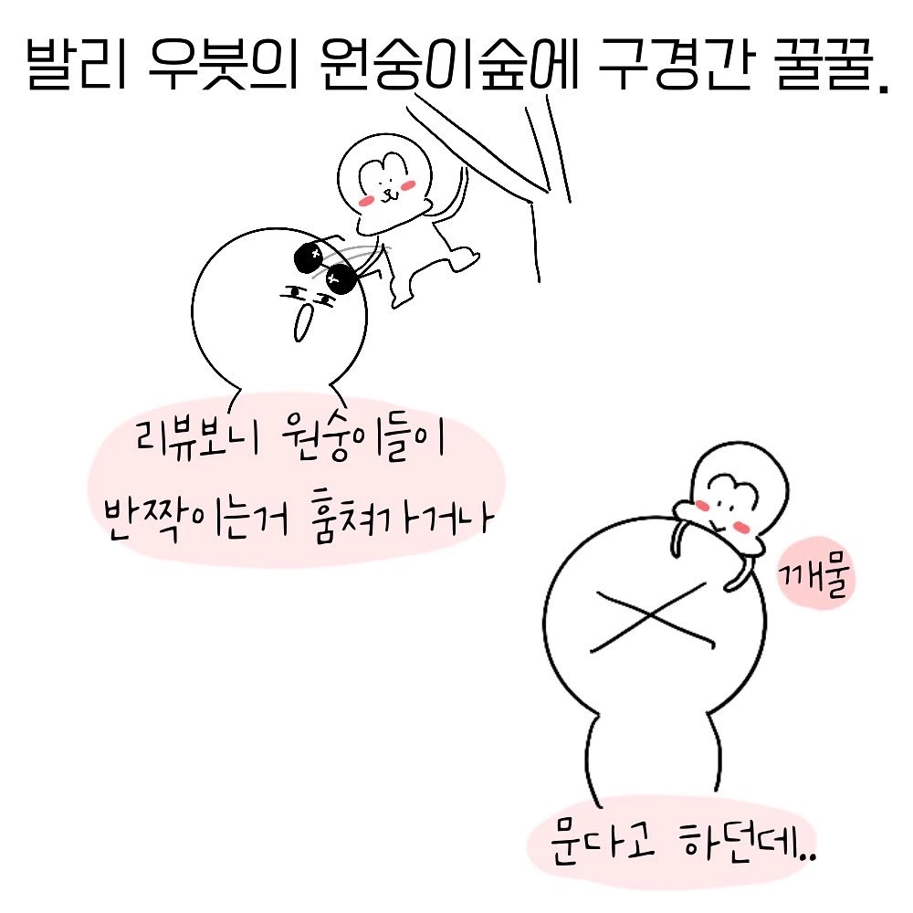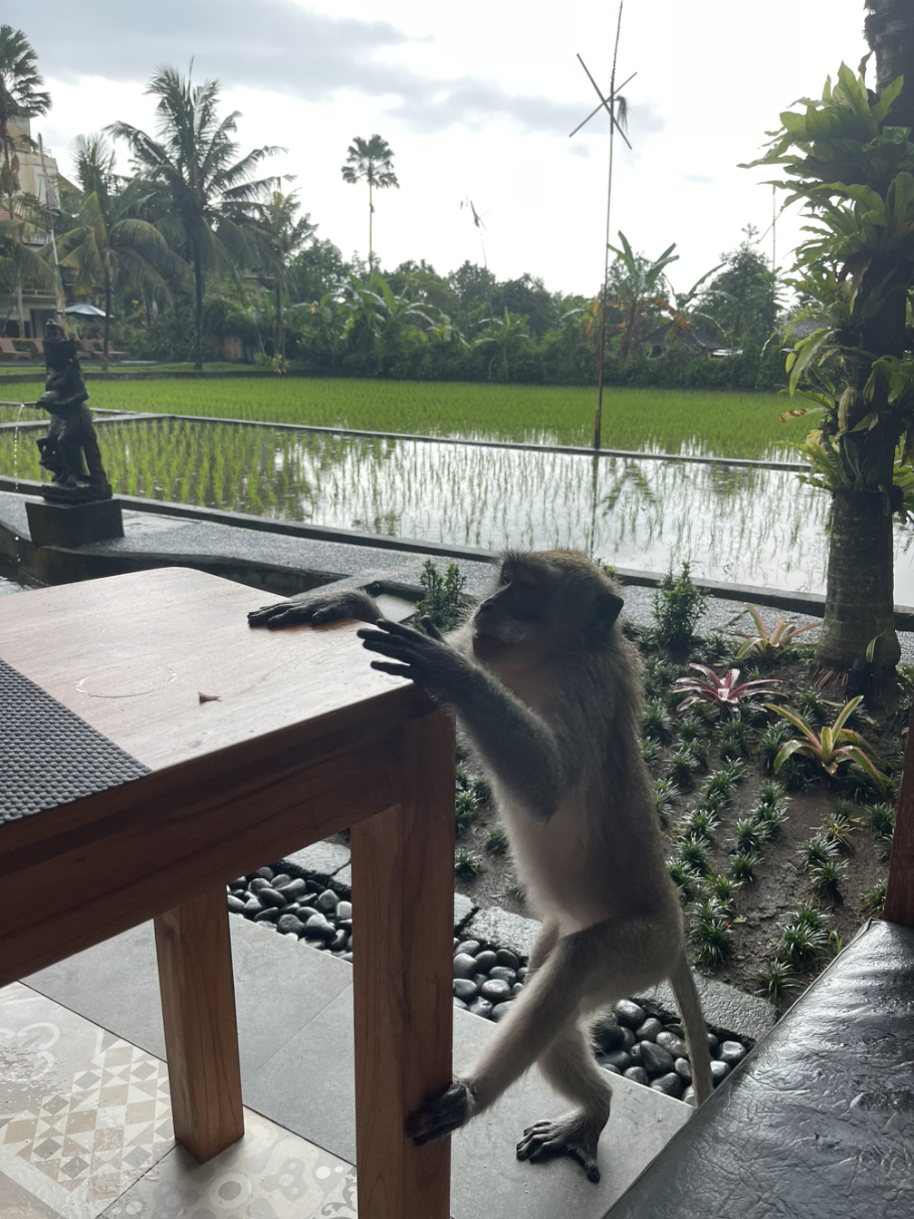 한참 원숭이들을 구경하던 나는 원숭이숲에서 나와 한 카페에 들어갔다. 아이스티한잔을 시켜놓고 더위를 식히다가 무언가 아른거려 고개를 들어보니 원숭이 한마리가 내 테이블로 올라오고 있다. 저 멀리서 직원이‘쉬익!‘하고 소리치며 달려온다.