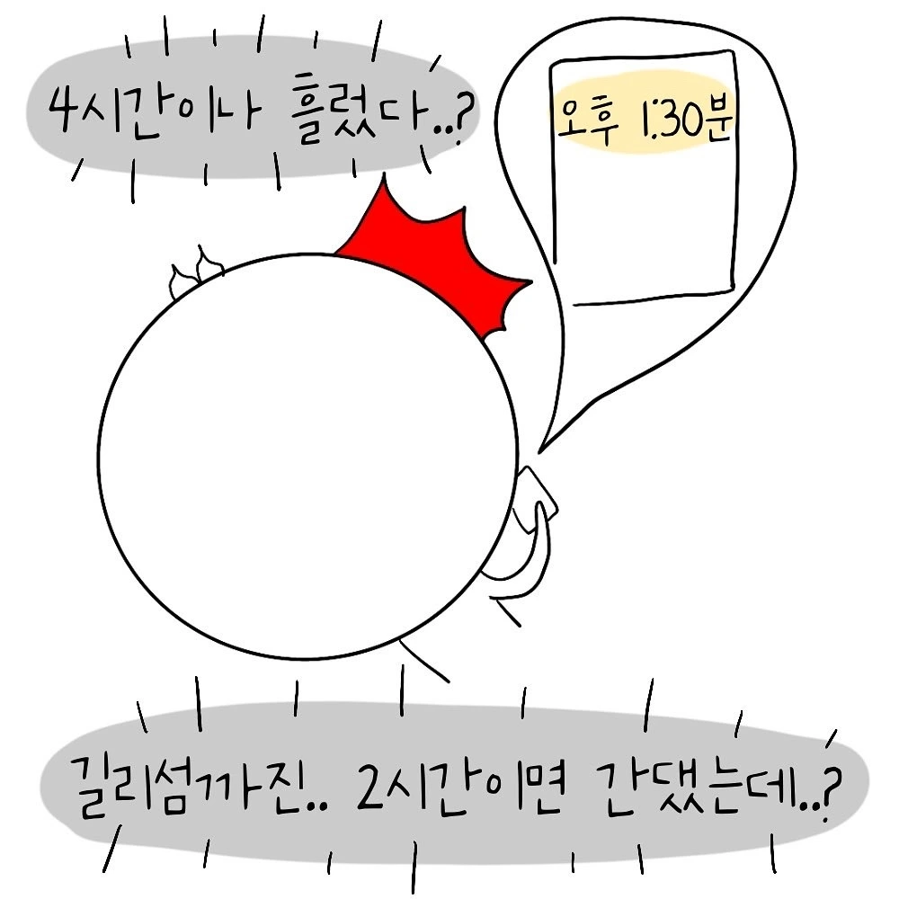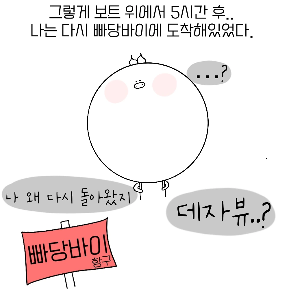 잠에서 깬 나는 뭔가 이상함을 감지했다. 이상할만큼 속이 쓰려 시간을 확인해보니 점심시간이 한참 지나있었다. 길리섬까진 분명 2-3시간이면 간댔는데 왜 4시간이나 지났지? 그제서야 지도를 켜본 나는 배가 다시 발리로 돌아가고있다는 것을 알아챘다. 직원을 붙잡고 물어보니 영어를 모른다라고만 한다.