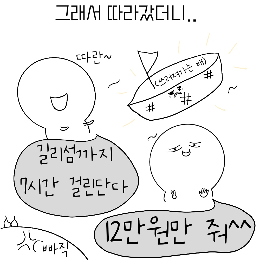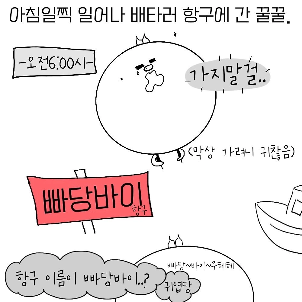 발리에서 동쪽으로 가면 길리섬이라는 섬이 있다. 그곳은 바로 tvn<윤식당>의 촬영지로도 유명한 곳. 윤식당 촬영지는 길리섬 중 트라왕안 섬이지만, 나는 길리섬중에서도 가장 작고 조용하다는 아이르섬의 에매랄드빛 바다와 황금빛 모래사장에 가고싶었다. 해변의 따사로운 일광욕을 떠올리며 설레는 마음으로 나는 빠둥바이 항구에서 보트에 올랐다. 잠시 후, 출렁이는 파도 위에서 배가 리듬을 타기 시작했다. 녹여먹는 달달한 멀미약을 혀에 붙이고 가만히 있자니 흔들리는 요람위에 있기라도 한것마냥 졸음이 몰려왔다. 그리고 나는 그대로 누워서 자기 시작했다.