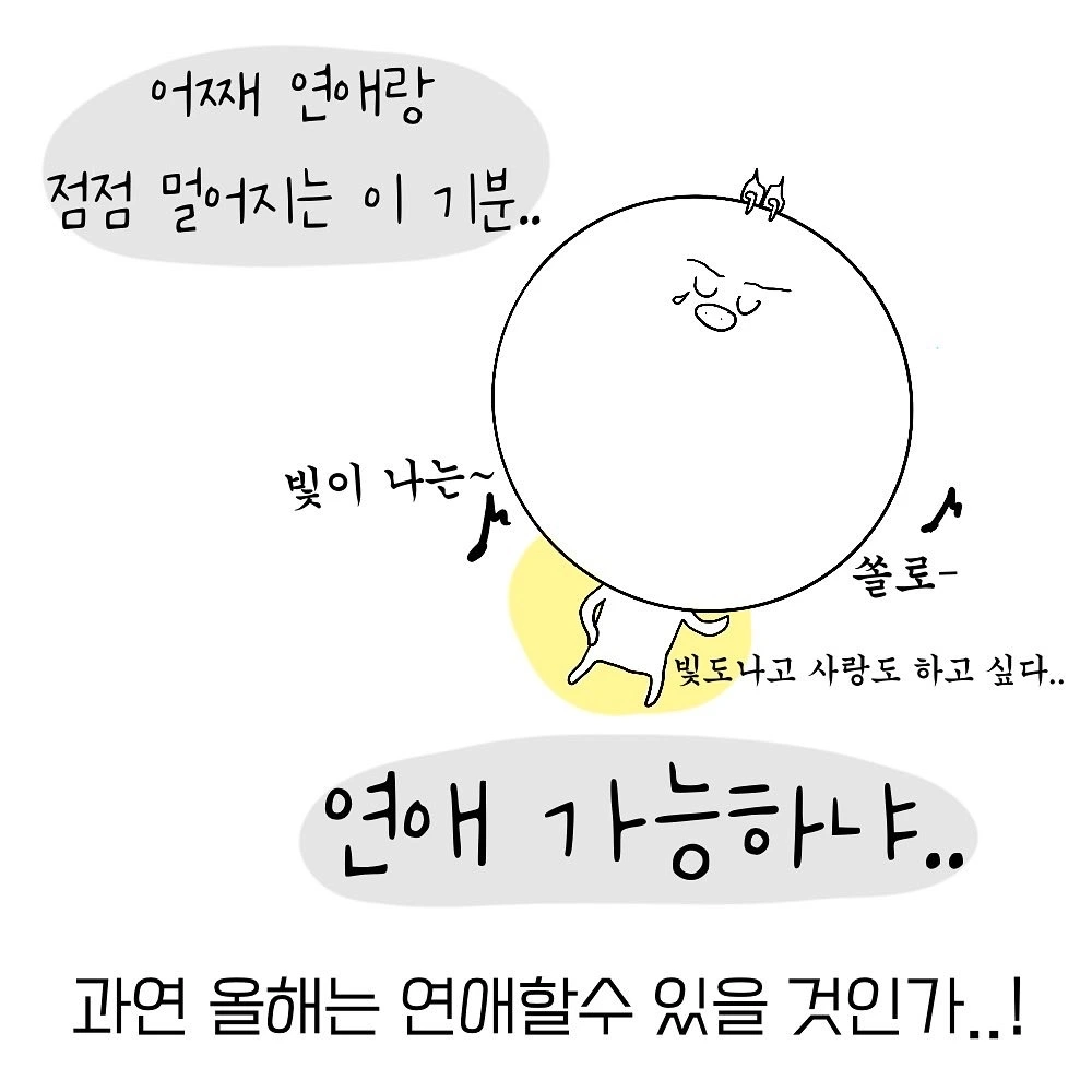 과연 올해는 연애할 수 있을까? 그 모든 장벽을 부수고, 두려움까지 극복하고도 남을만큼 좋아하는 사람이 생겼으면 좋겠다. ‘빛이나는 솔로’의 자유로운 생활도 물론 즐거운 것은 사실이지만 진지하게 마음을 나눌 만한 사람이 생겼으면 좋겠다. 정말로 그랬으면 좋겠다!