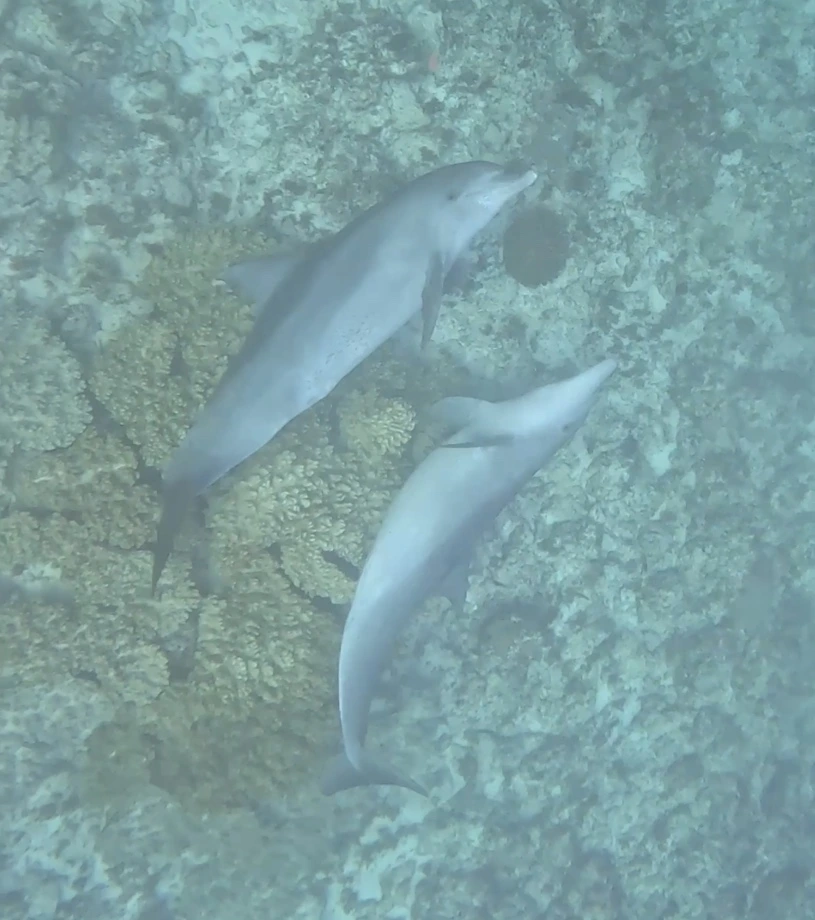 배로 올라와 잠시 쉬다가 두 번째로 뛰어들었을 때에는 돌고래 대가족이 헤엄치는 장면을 보았다.
