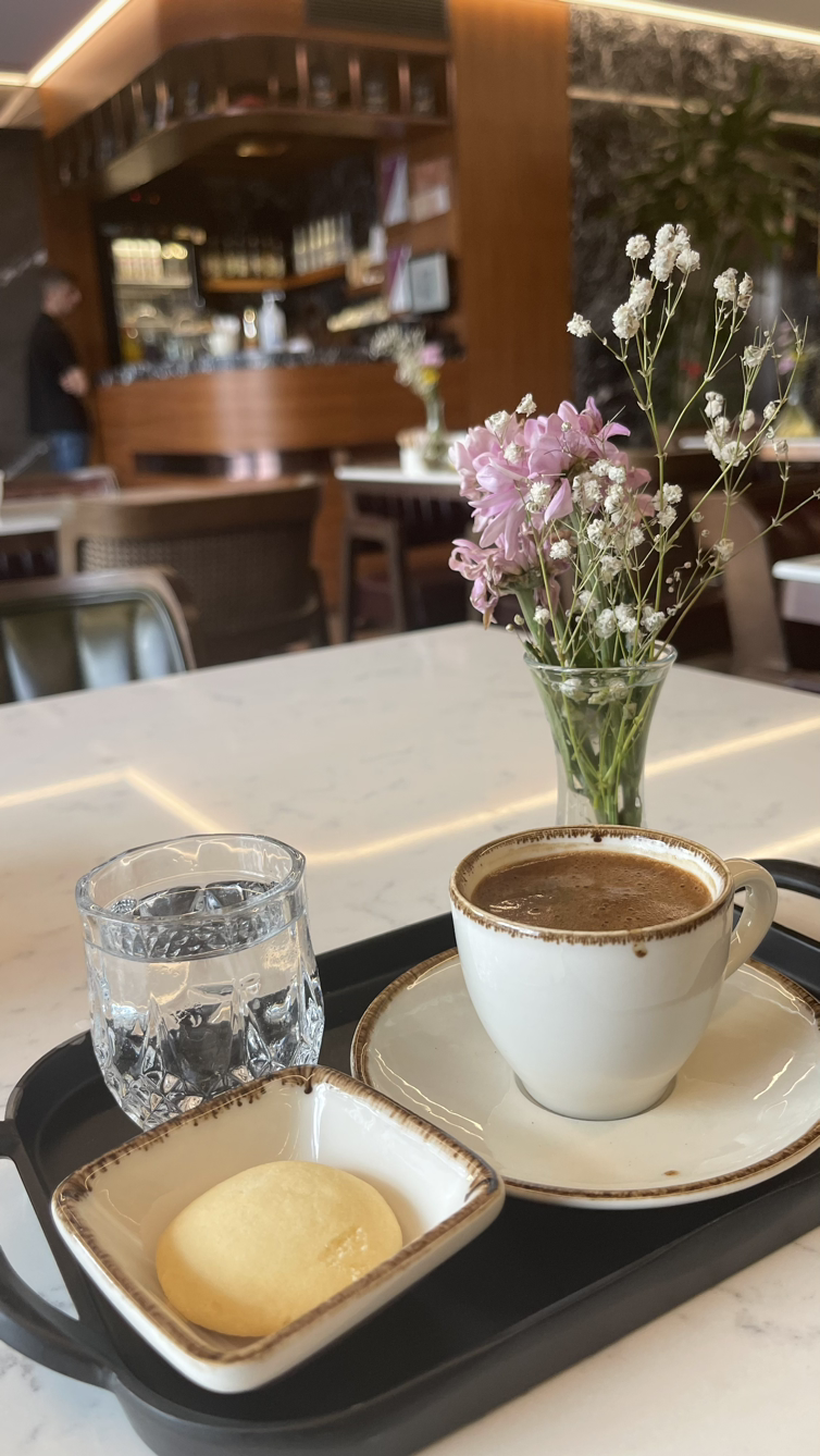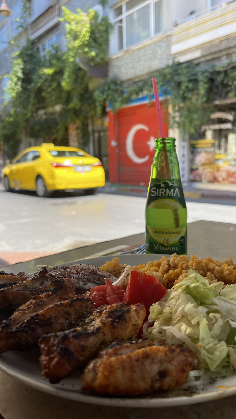 튀르키예에 도착한 나는 호스텔에 짐을 풀어놓고 용수철처럼 밖으로 튕겨나갔다. 오늘의 최종 목적은 카이막이지만 일단 너무 더우니까 시원한 카페에 들어가 본토식 터키쉬 커피를 한잔 마셔줬다. 터키쉬 커피는 마치 견과물을 잘게 갈아놓은 것 같은 가루를 에스프레소와 섞은 그런 맛. 율무차 식감인데 맛은 아메리카노인 그런 커피. 그러고 나서 친구가 추천해 줬던 식당에서 5천 원짜리 치킨케밥을 먹어준다. 아아, 본토의 치킨케밥. 잘 구워져 겉이 살짝 바삭하고 속살은 부드럽다. 매콤하고 짭짤한 닭다리살을 한입 먹고 밥과 콘과 야채를 입에 넣어 같이 씹으면 그건 바로 환상.
