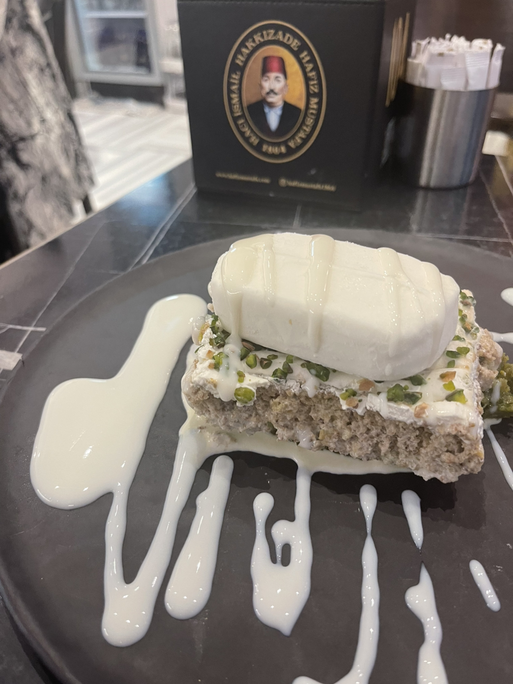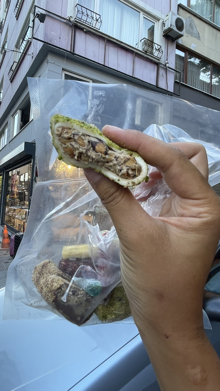 마지막으로 찾아간 곳은 튀르키예의 유명한 바클라바 맛집. 유명세에 비해 솔직히 바클라바는 너무 심하게 달았다. 패스츄리 식감인데 층 사이사이를 설탕으로 절인 것 같은 그런 맛. 한입 베어 물고 나면 너무너무 달아서 머리가 띵할 지경이다. 바클라바는 딱 한 개만 먹으면 적당했을 것 같다.
