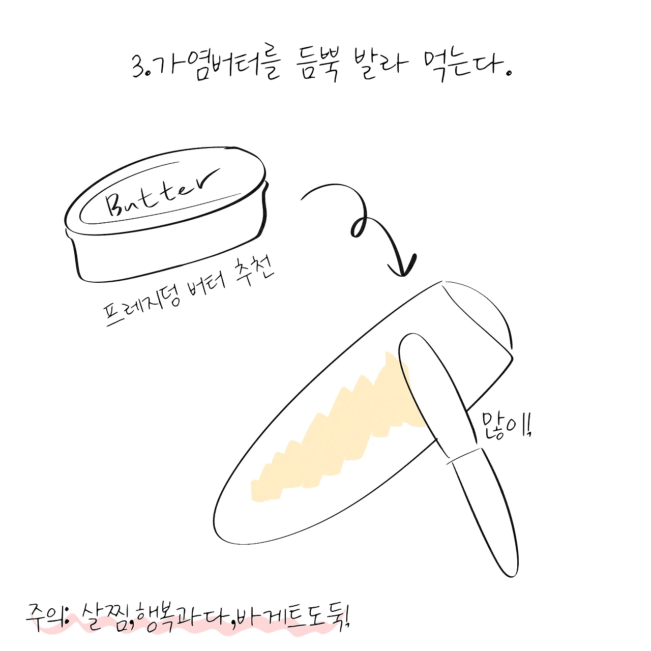 *별첨: 프랑스식으로 바게트에 버터 발라먹는 법.