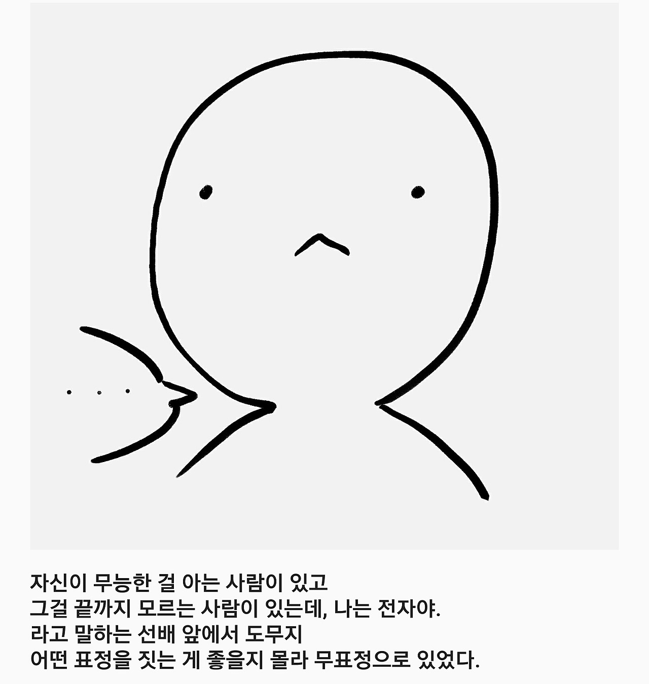 어떤 표정을 짓는 게 좋을지 몰라 무표정으로 있었다.