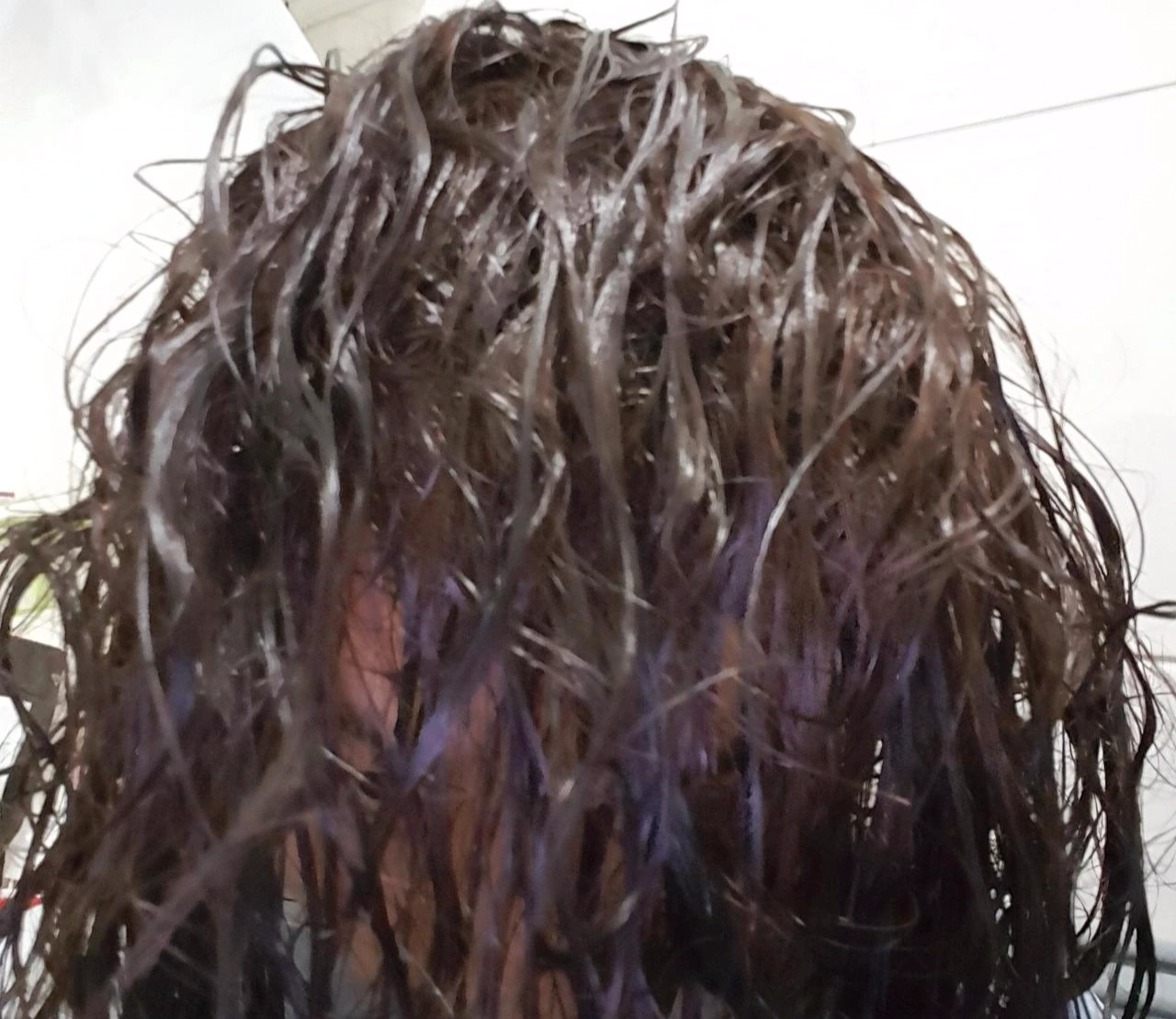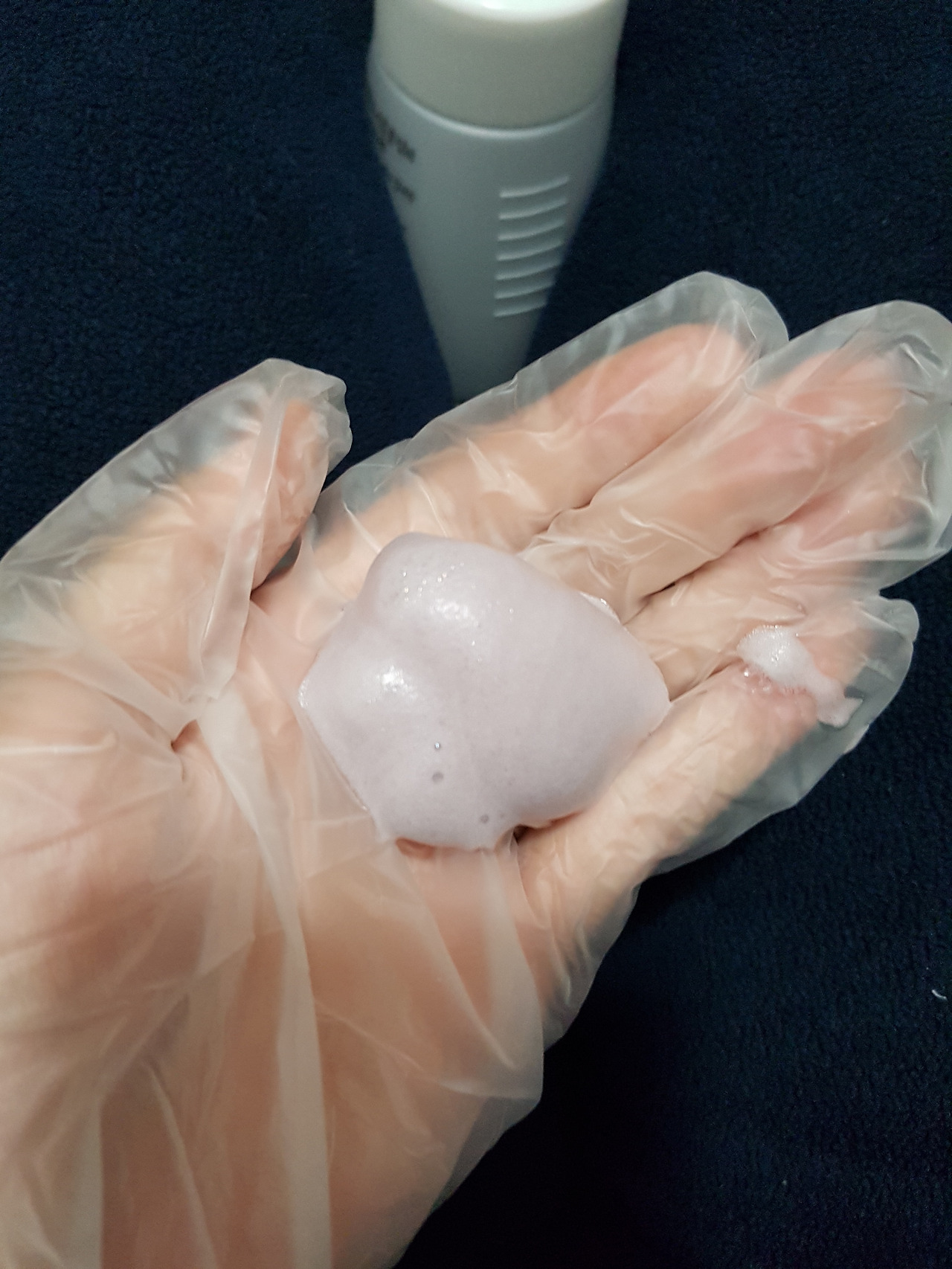 몇 차례 펌핑하면 이런 거품이 나온다. 초반엔 연한데 계속 염색을 하다 보니 진한 보라색으로 바뀐다. 경험상 진한 거품이든 연한 거품이든 결과물은 똑같았다. 늘 생각하지만 이쪽엔 문외한인지라 보라색을 발랐는데 고동색이 나오는 게 마냥 신기하다.