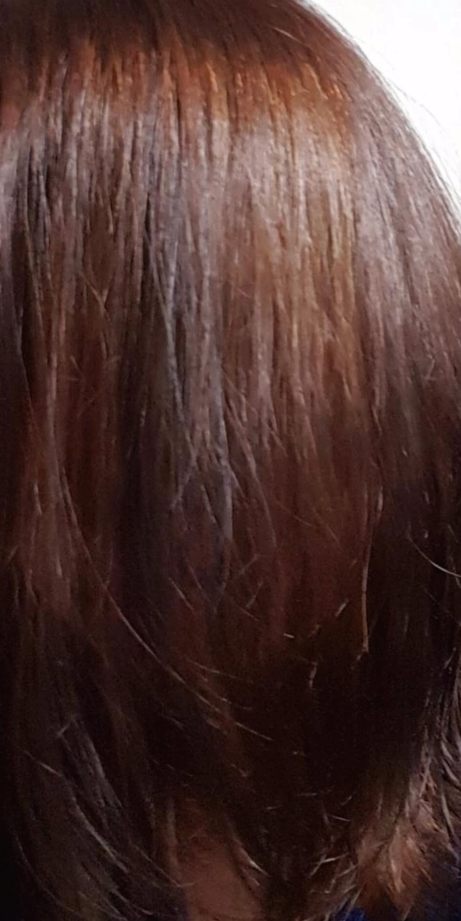 애프터 사진. 작업 전부터 원래 머리 색이 워낙 밝은데 + 이 컬러를 가지고 셀프 염색한 사람들 후기에 일관되게 '겁나 진해져요'라고 적혀 있어서 얼마나 기다려야 할까 고민했다. 이럴 땐 역시 눈대중이지. 설명서대로 딱 바르기 시작한 순간부터 30분 동안 기다렸다가 곧장 구정물(?)이 빠질 때까지 헹궈냈다. 계속 씻어도 씻어도 검정 물이 나와서 벼루를 씻는 기분이었다. 어느 정도 검은 물이 빠진 뒤 트리트먼트를 바르고 1분 정도 기다렸다 다시 헹궈냈다. 모든 작업이 끝나고 말린 뒤에 형광등 불빛 아래에서 찍은 사진이다. 딱 봐도 어둠의 다크에 한껏 물든 아우라가 모니터 밖으로도 느껴진다.