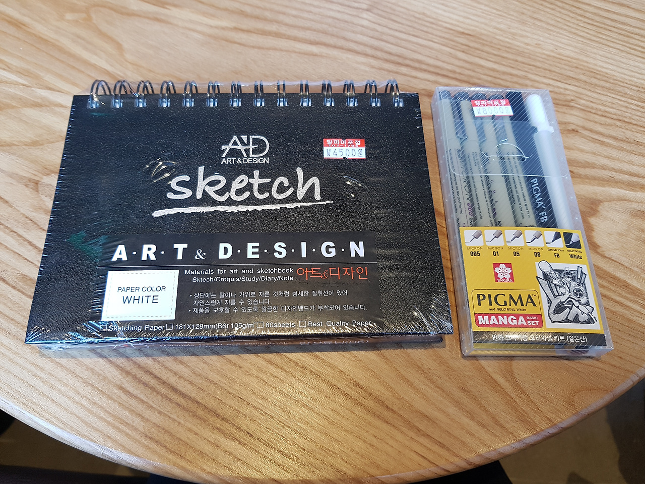 누군가 내게 지금 막 떠오르는 지름의 3대 개미지옥을 꼽으라면 알파문구와 아트박스, 핫트랙스를 꼽을 것이다. 일단 들어가면 뭔가 집어 들게 되기 때문이다. 다이소는 프로 지름러들의 예루살렘 같은 곳이니 패스하자. 서두가 설득력이 없었지만 아무튼 오늘은 알파문구에서 지른 사쿠라 피그마 만화 그리기용 오리지널 키트 리뷰. 석봉이 어머니가 가래떡을 썰려면 도마가 필요한 것처럼 왼쪽의 스케치 노트는 그냥 그런 용도다. 손바닥에 그려서 리뷰할 수는 없는 노릇이니까.