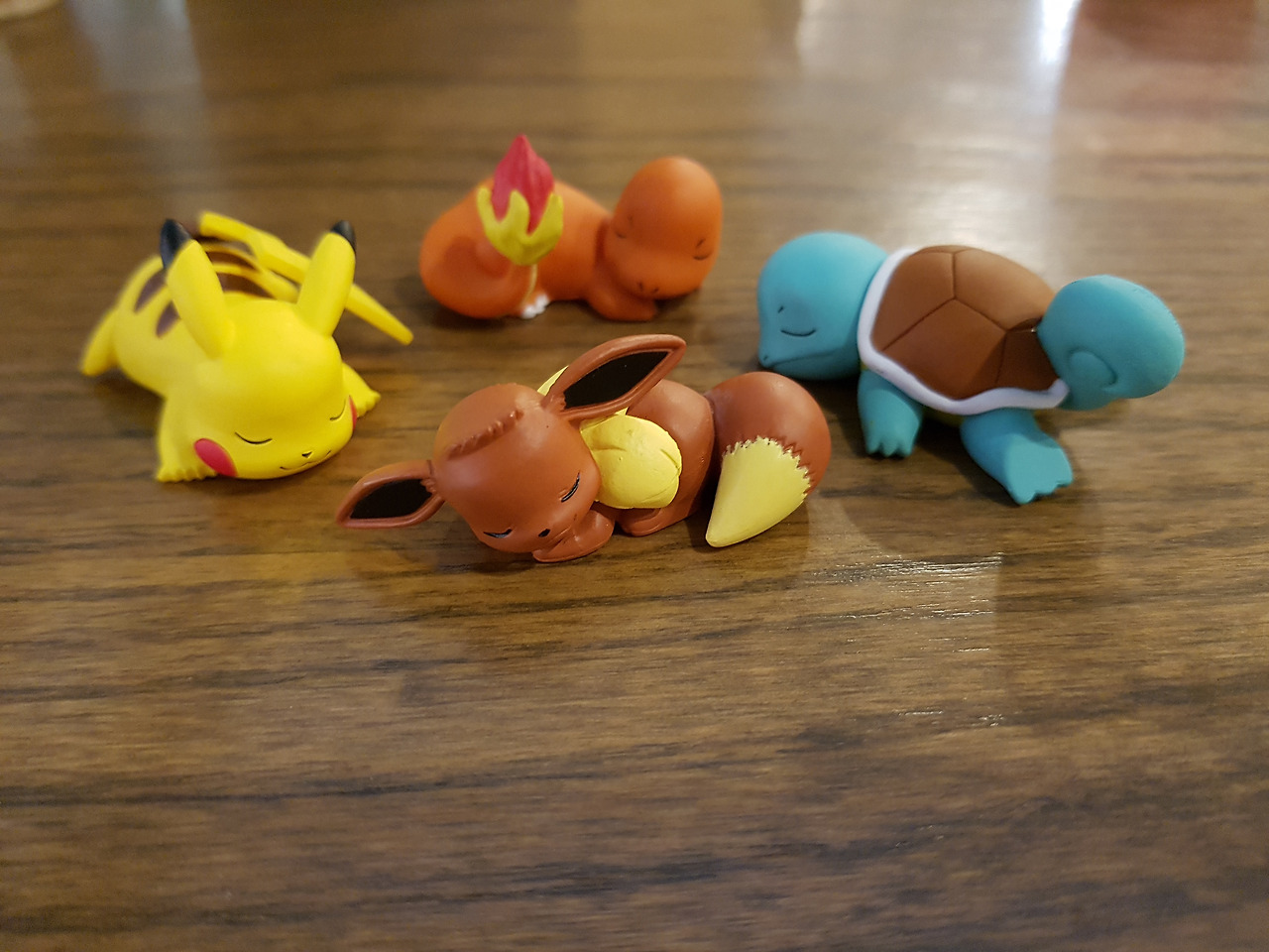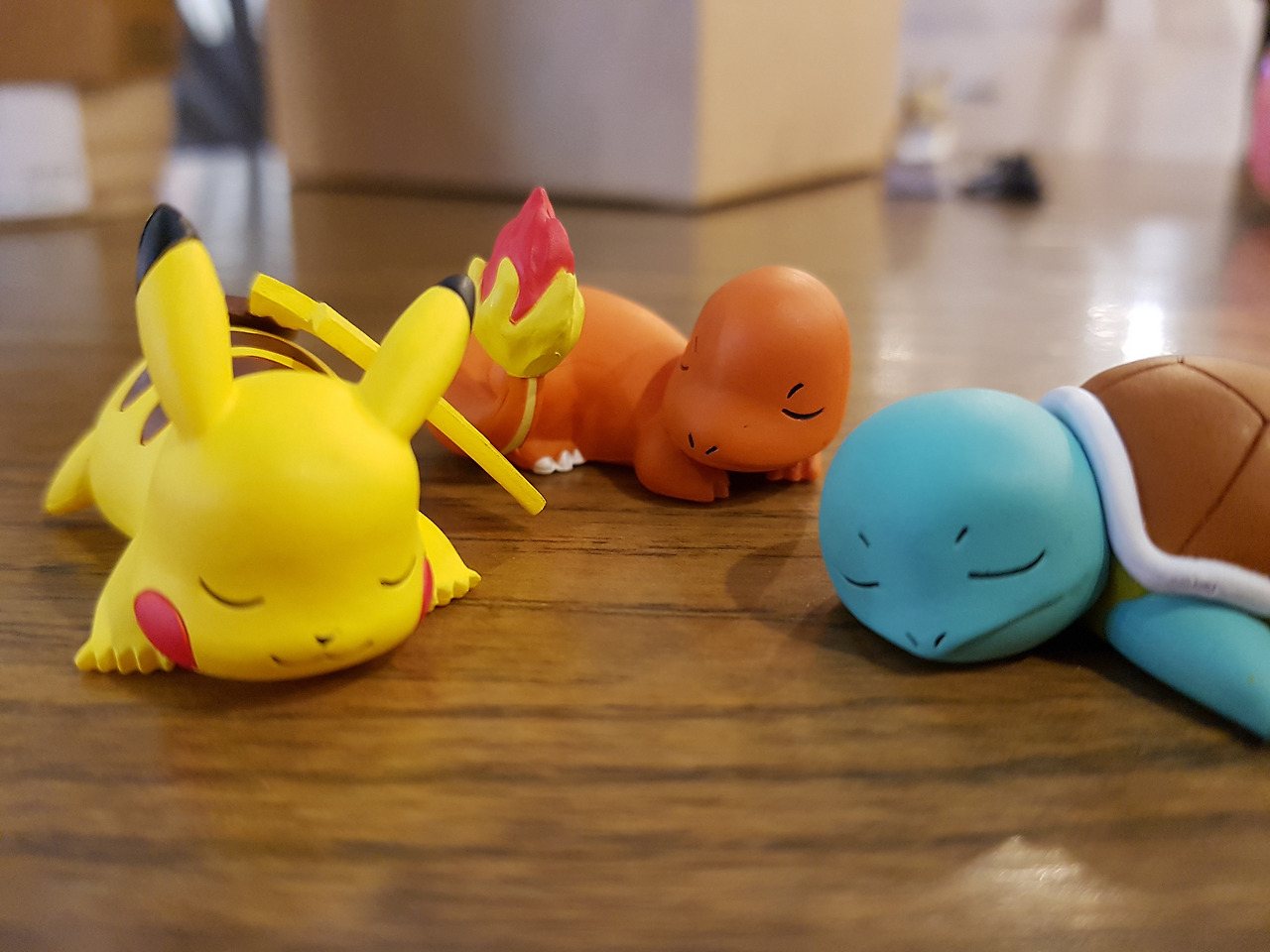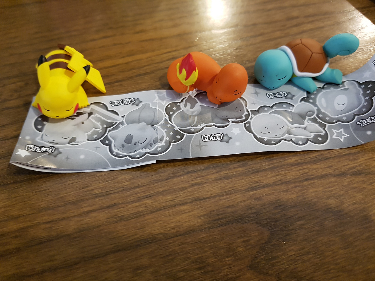 아 귀엽다. 왼쪽부터 잠꾸러기 피카츄, 잠꾸러기 파이리, 잠꾸러기 꼬부기.