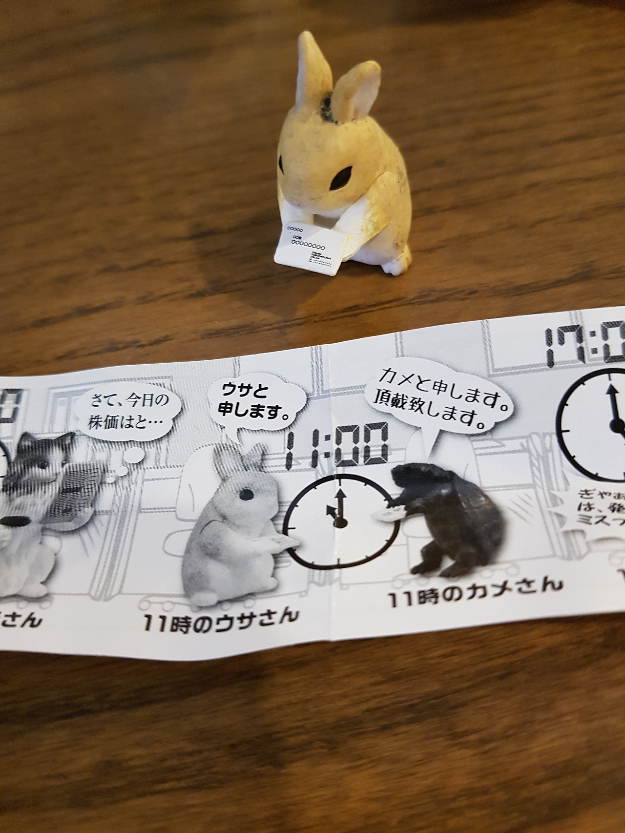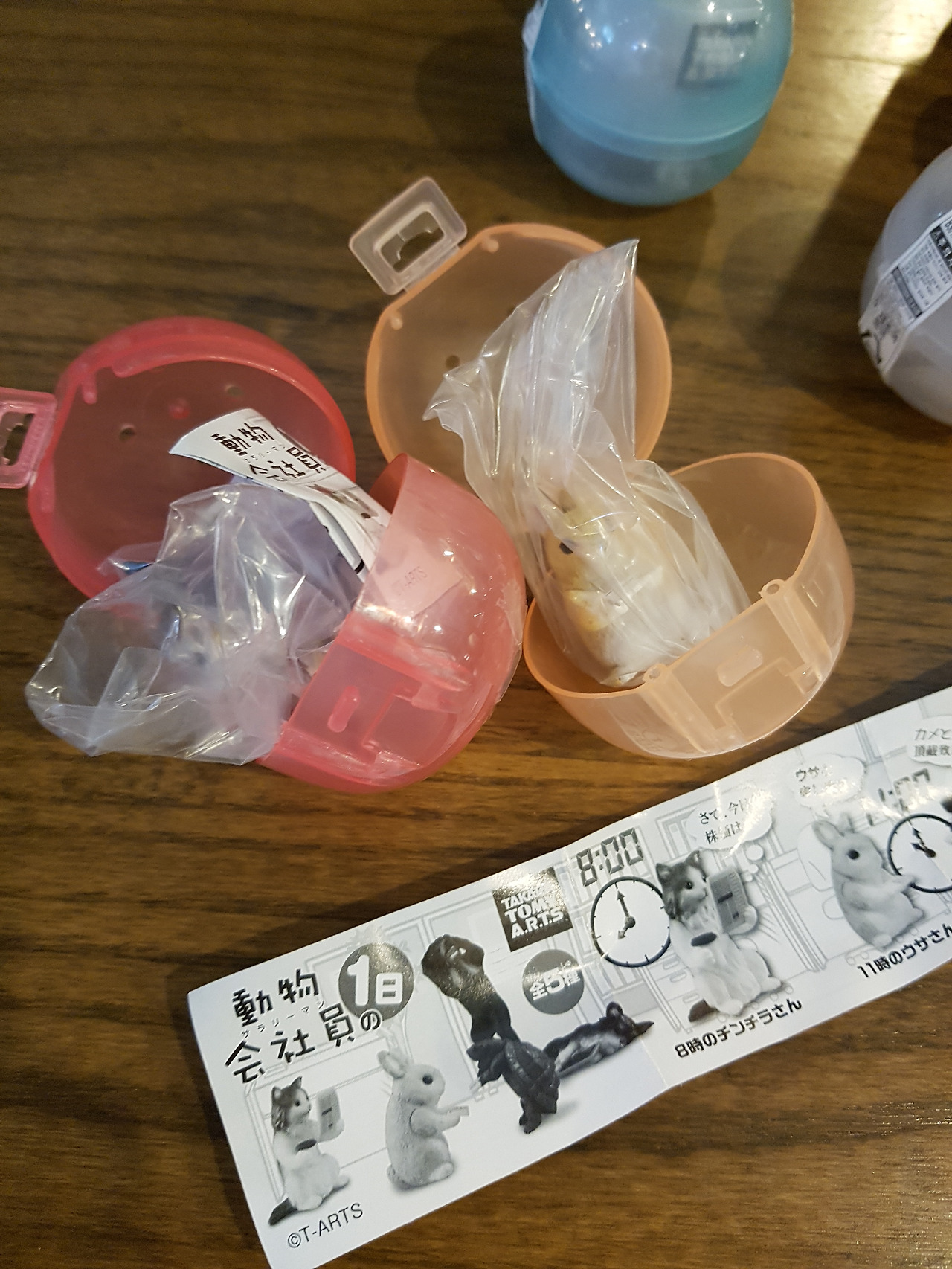 알을 사 왔으니 부화시키는 게 인지상정. 먼저 뽑은 건 동물 비즈니스맨의 하루 일과 가챠다.