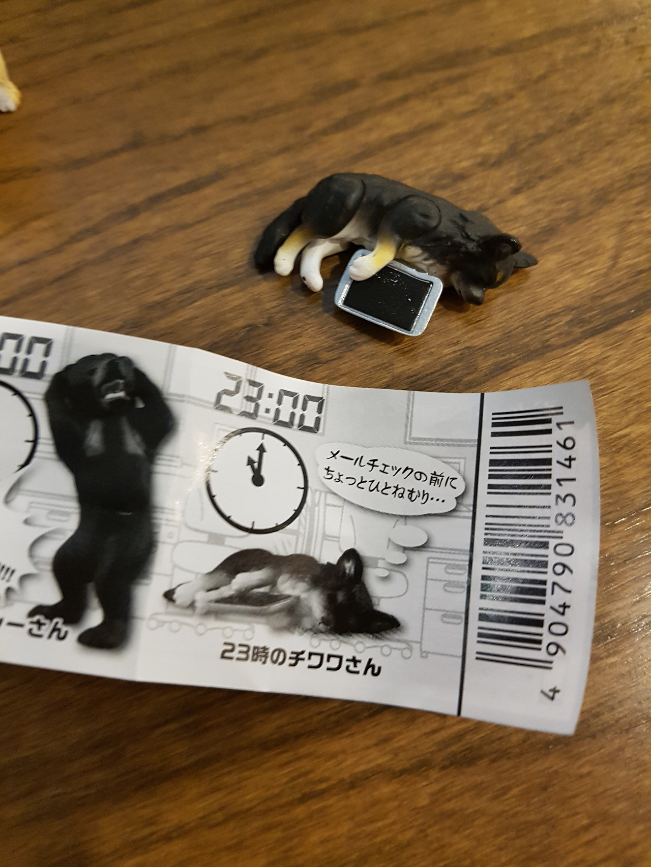 그리고 썩 뽑고 싶지 않았던 밤 11시의 치와와 씨(치와와 상)도 뽑아버렸다. 이렇게 두 개를 뽑았는데 벌써 5000원 탕진잼. 각각 500원짜리를 5개나 먹어버리는 무서운 녀석들이다.