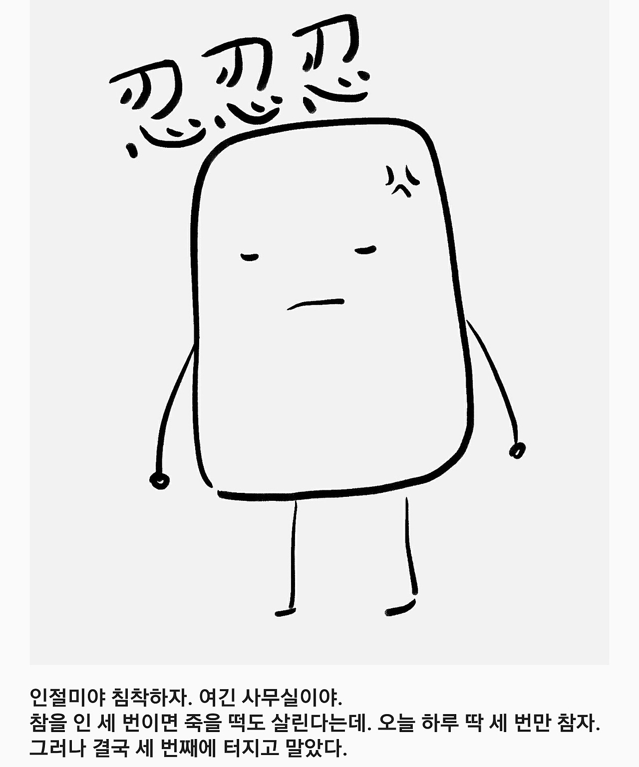 참을 인 세 번이면 죽을 떡도 살린다는데. 오늘 하루 딱 세 번만 참자.