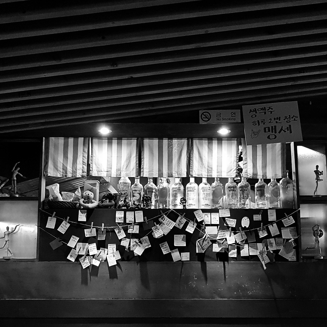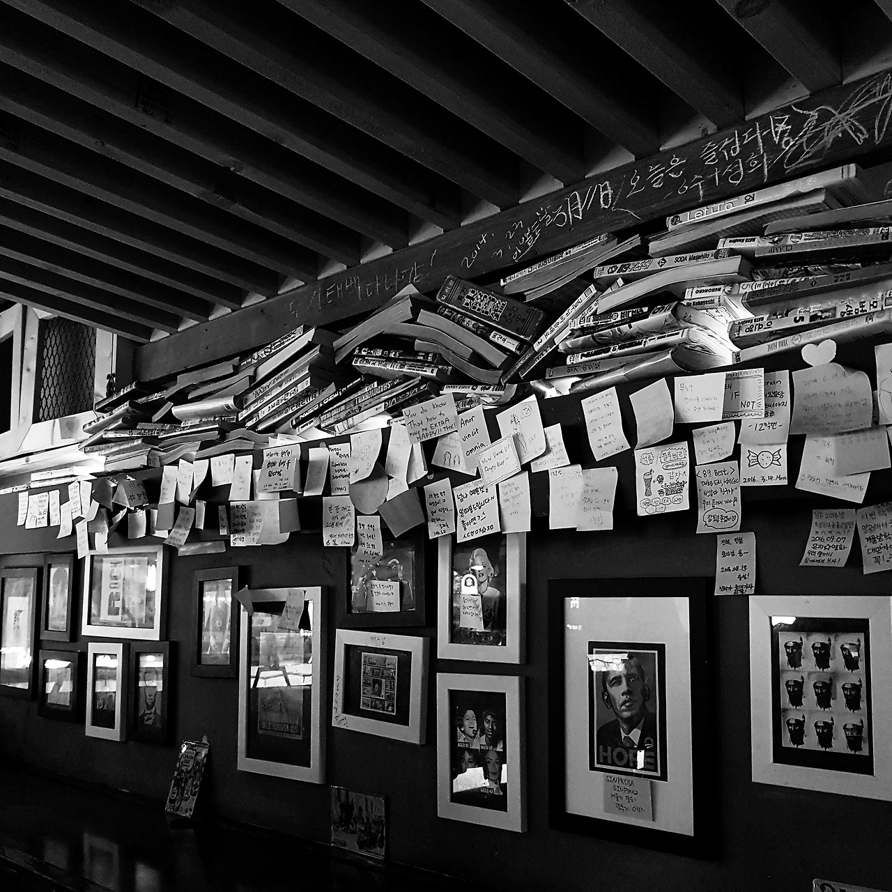 아기자기한 인테리어는 대학가 맥주집들의 전매특허. 구석구석 소품들 구경하는 재미, 붙여놓은 메모 읽는 재미가 있다. 회식 때문에 가는 술집에서는 이런 분위기를 느끼는 게 쉽지 않다.